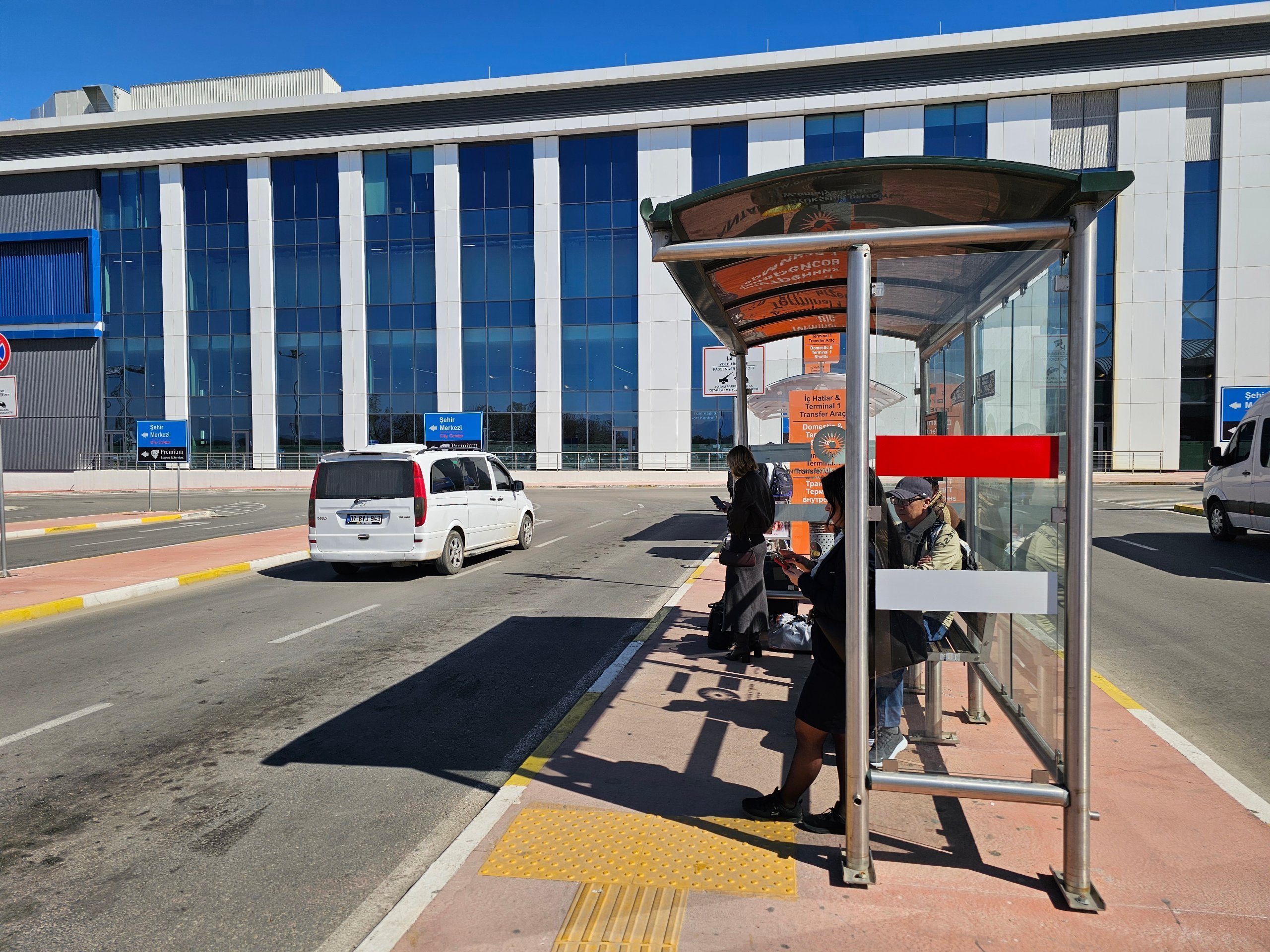 Tram T1A... c'è un bus navetta gratuito dall'arrivo T2 alla fermata. Se andate in macchina dal centro all'aeroporto, attenzione, c'è anche un tram T1B per Aksu su questa linea (può essere usato per visitare Perge).