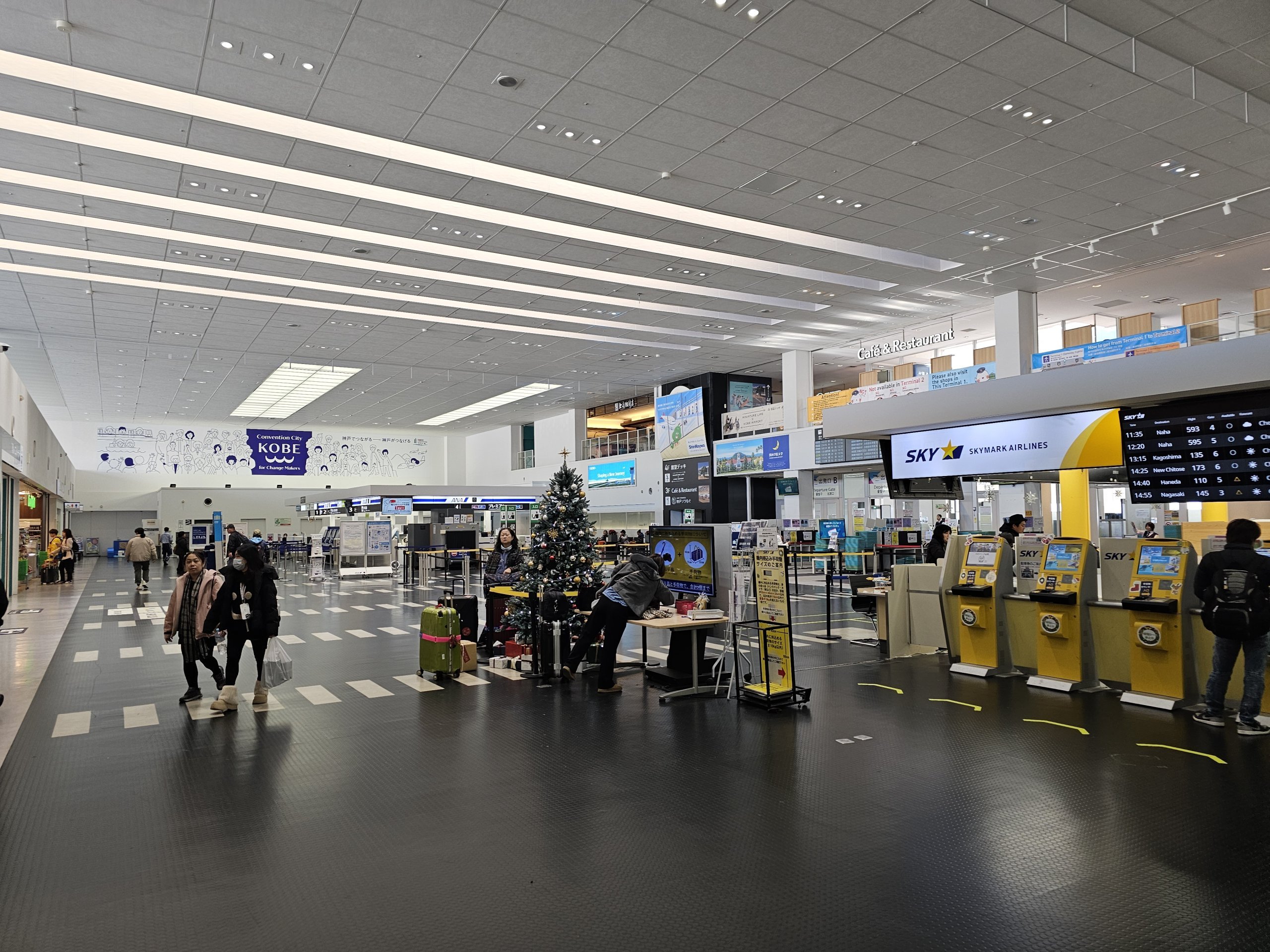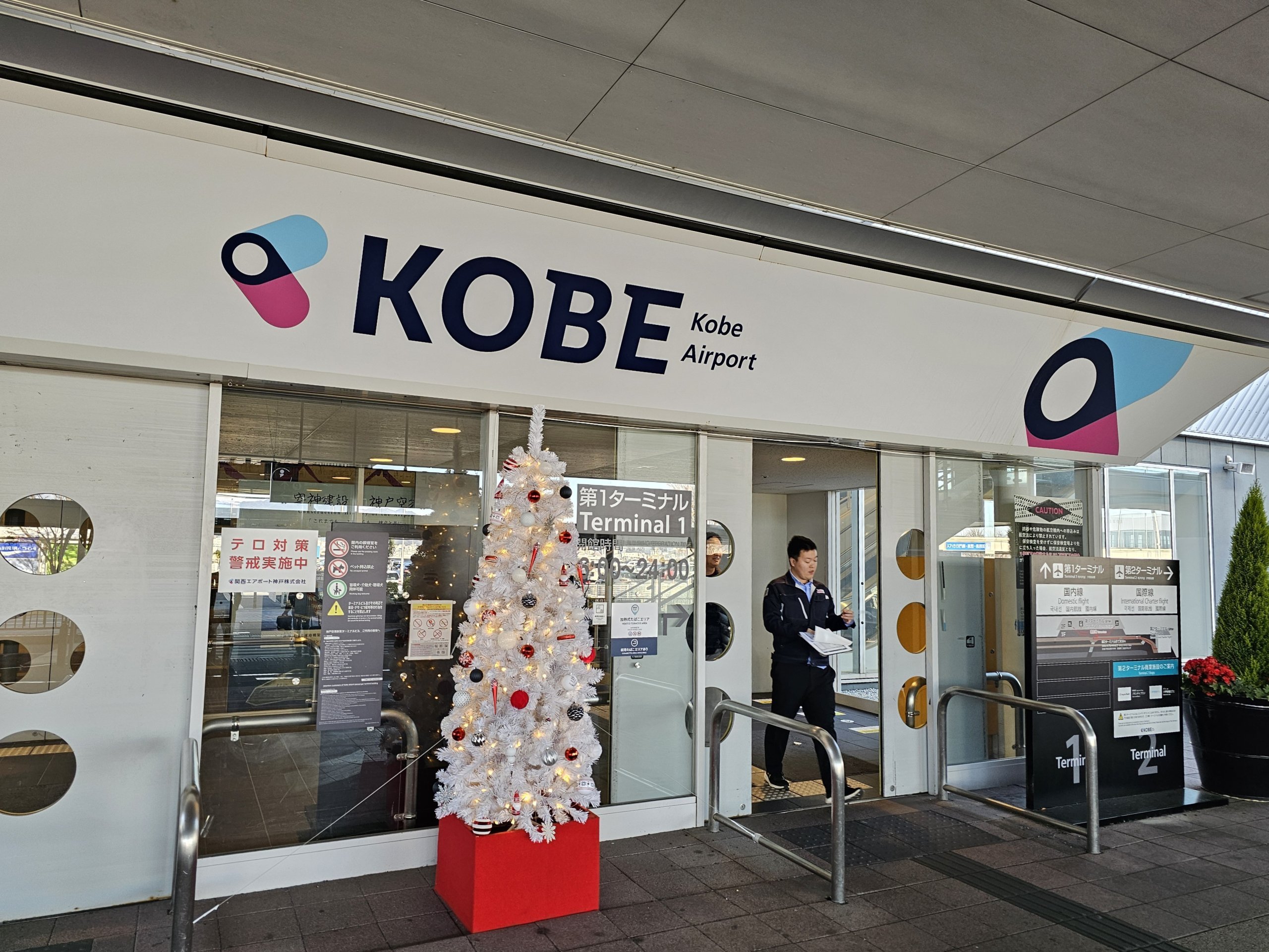 L'aeroporto di Kobe dispone di due terminal piccoli e ben organizzati in edifici separati a circa 400 metri di distanza.