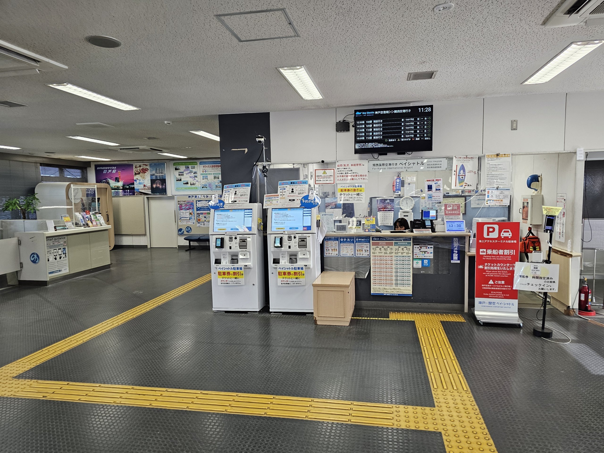 Un bus navetta gratuito che collega i terminal 1 e 2 si ferma al molo e collega a tutti i traghetti, vedere gli orari dettagliati: kobe-access.jp