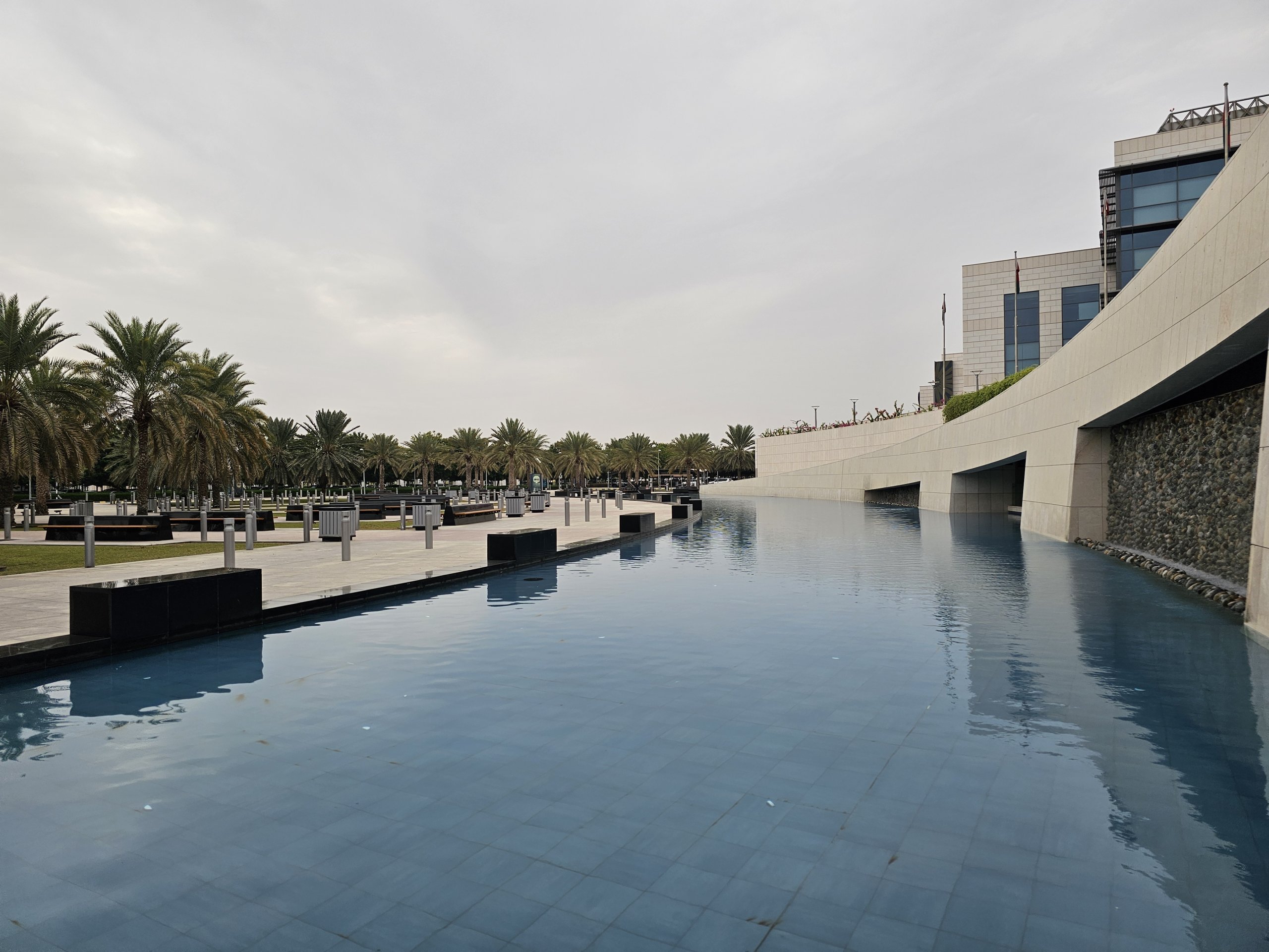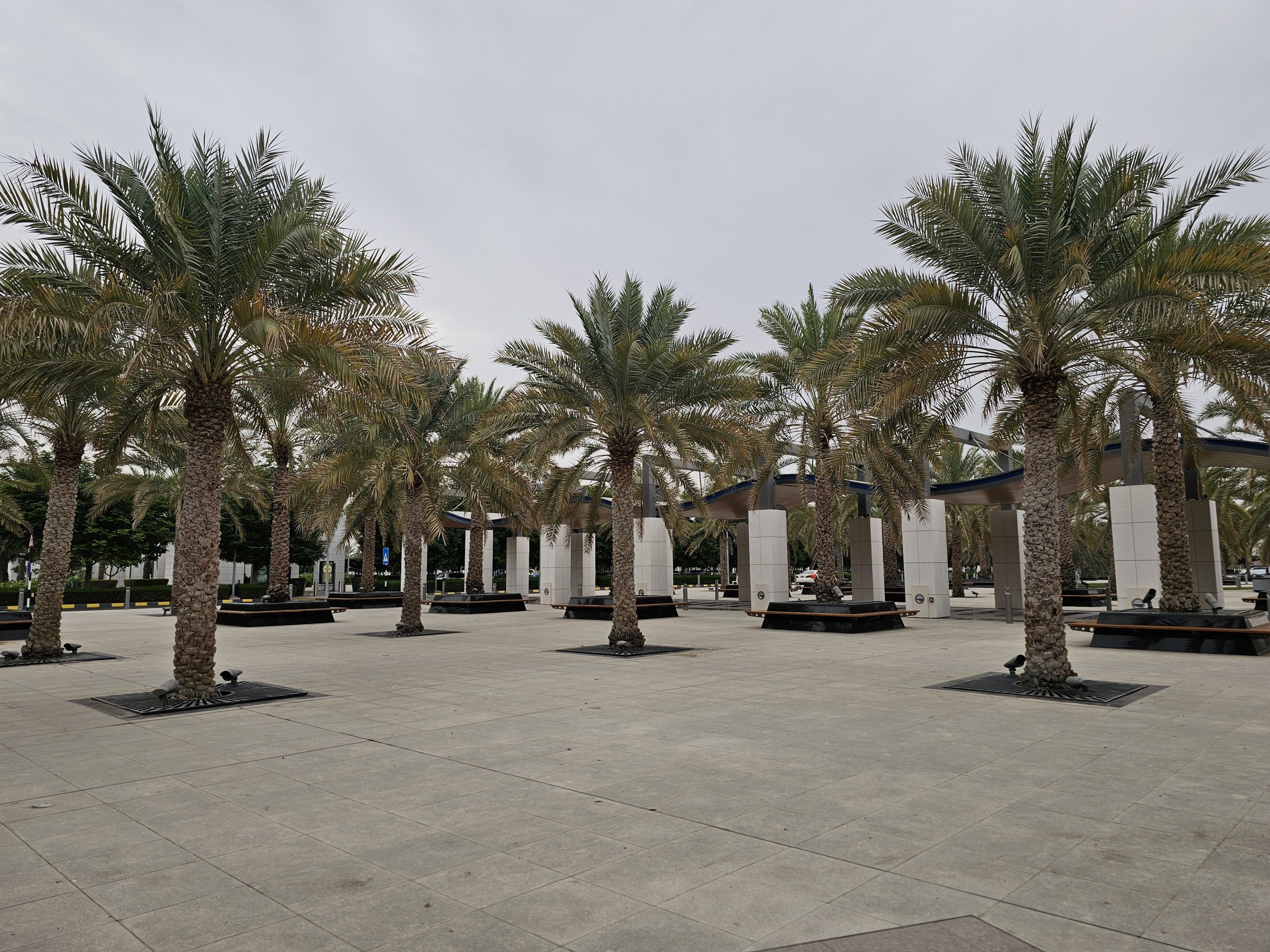 Nel seminterrato fuori dal terminal, è possibile rilassarsi in un parco ben curato con numerose panchine di palma e una fontana.