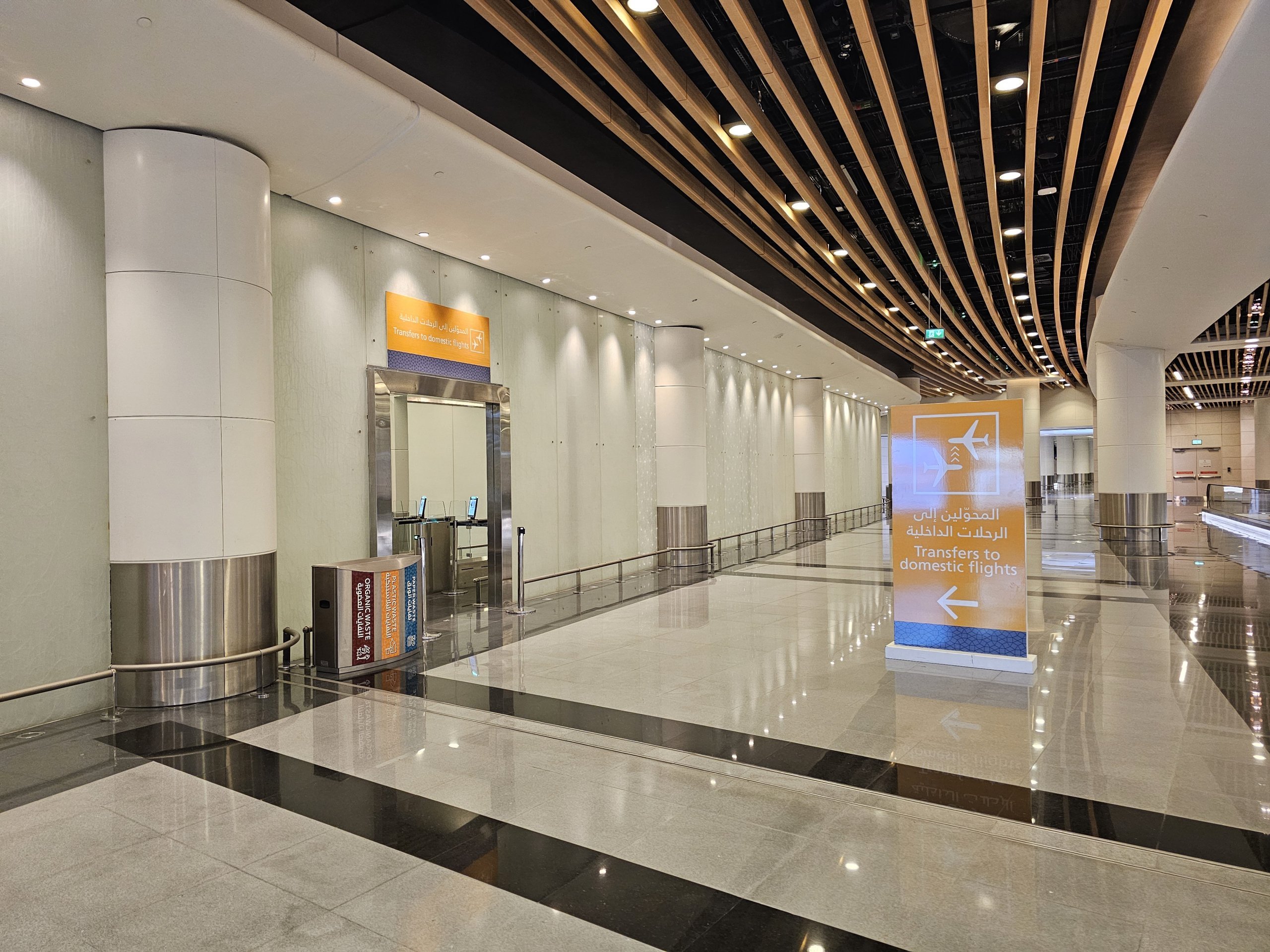 Seguite le indicazioni "Domestic Transfers", che vi condurranno a uno speciale punto di controllo passaporti e sicurezza riservato ai passeggeri in transito.