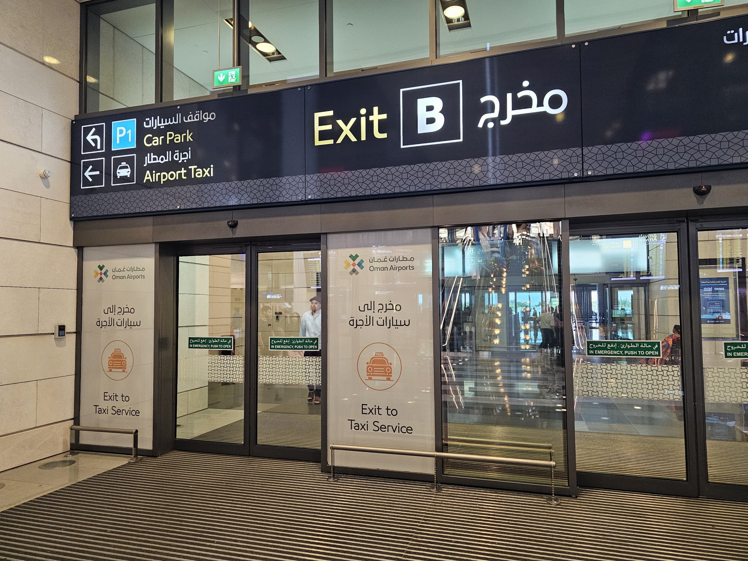 I banchi di noleggio si trovano proprio nella sala arrivi. Inoltre, l'aeroporto si trova sull'autostrada principale dell'Oman, la segnaletica è molto buona e viaggiare in auto in Oman è senza problemi anche per i visitatori stranieri.