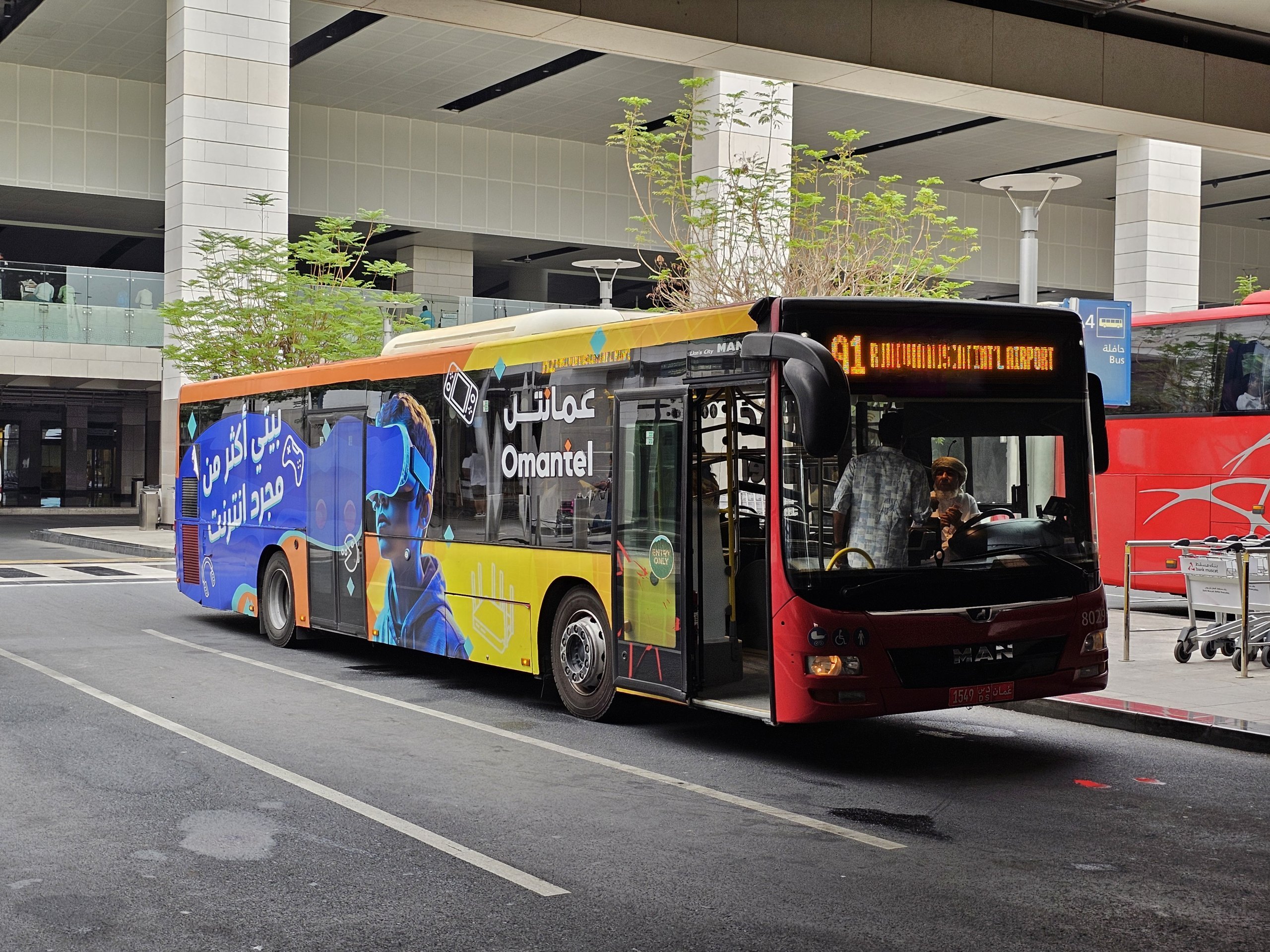 La linea A1 collega l'aeroporto con il centro e la stazione degli autobus di Ruwi. L'aeroporto non è un capolinea della linea A1, quindi gli autobus partono anche da qui verso la periferia di Muscat fino alla stazione degli autobus di Mabelah a Seeb, che non è una destinazione interessante per i turisti.
