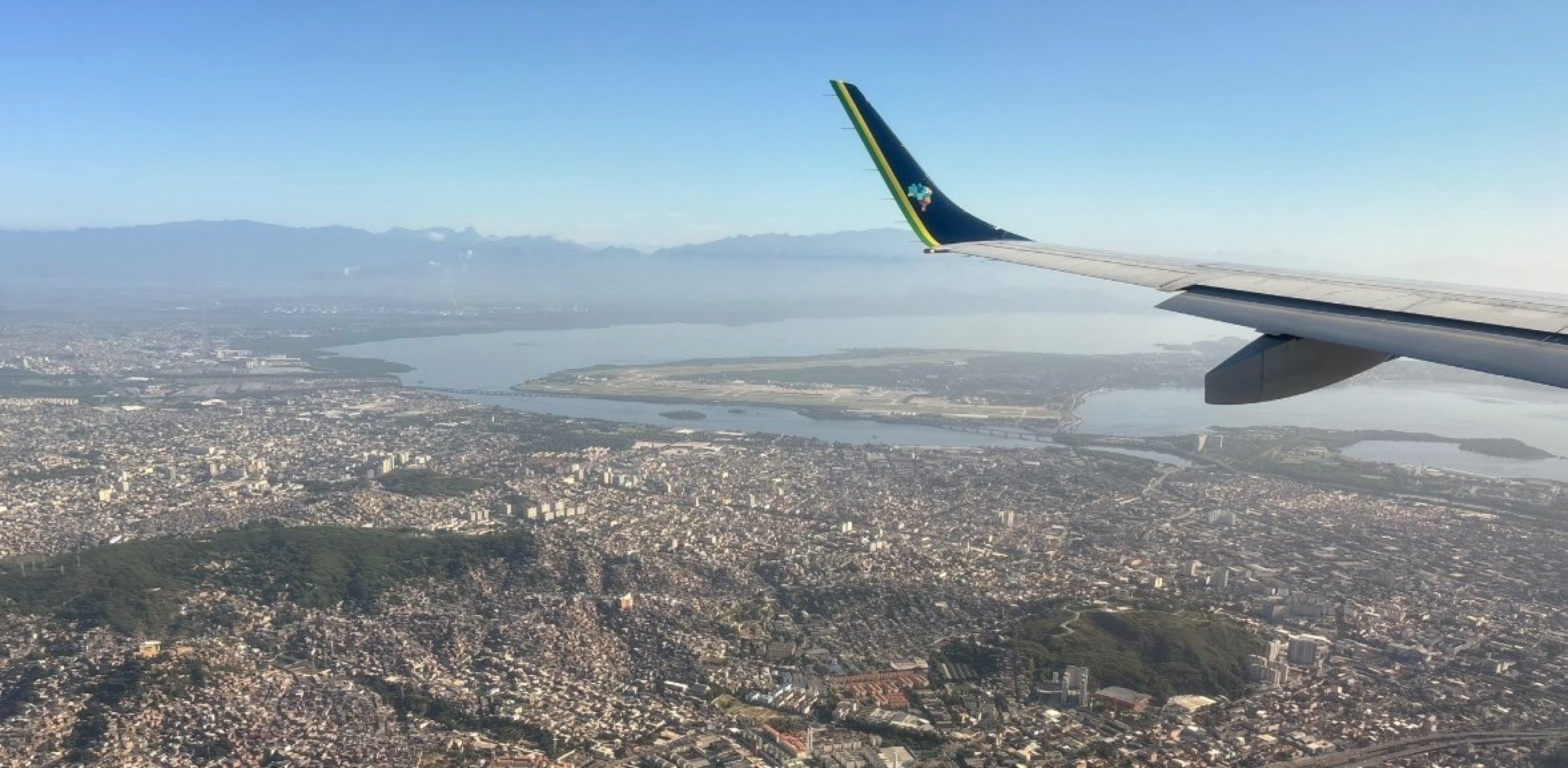 Una vista dell'aeroporto di Galeão a Ilha do Governador durante un volo GRU-SDU con Embraer-195 di Azul Linhas Aéreas.