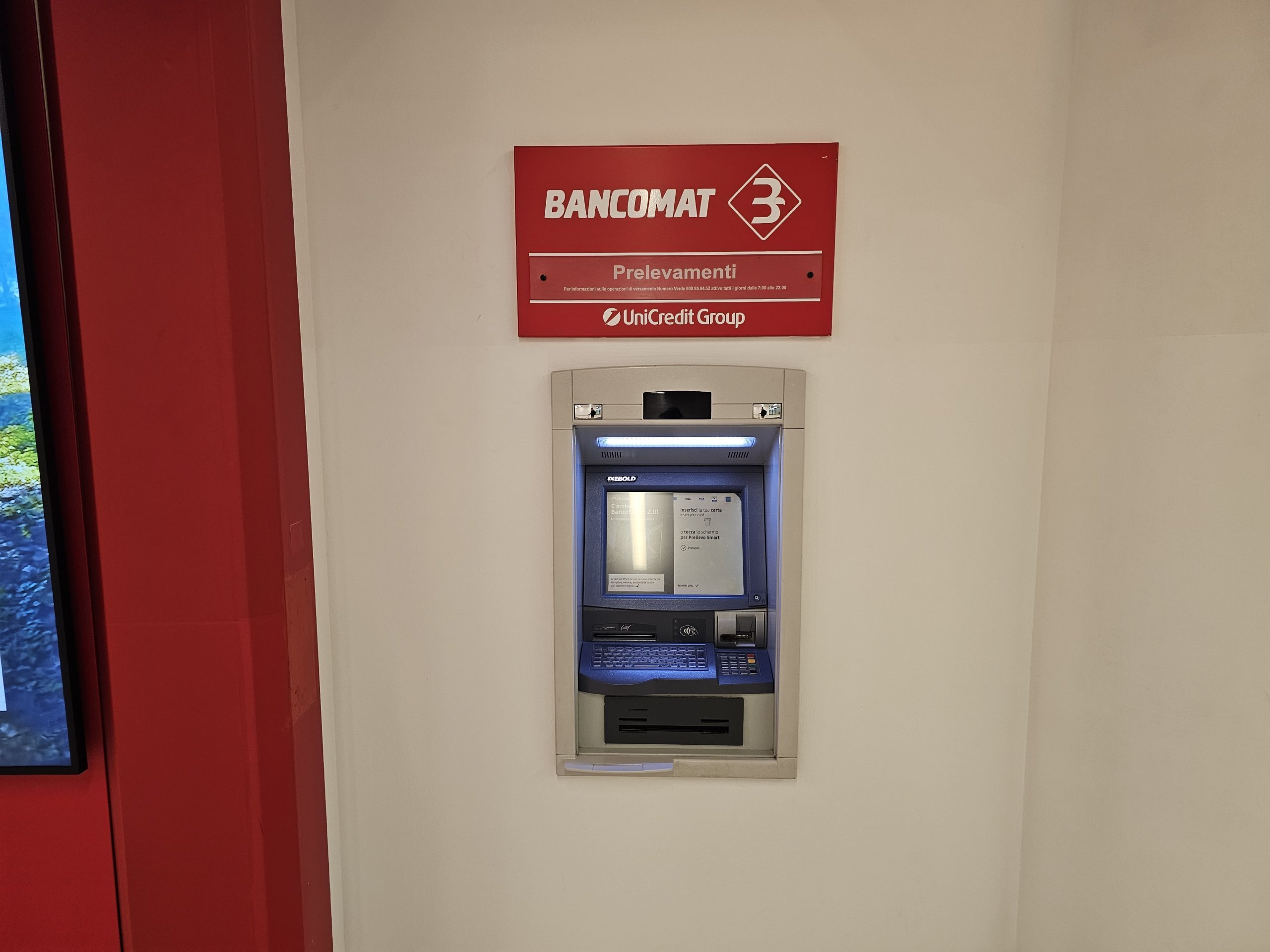 Nella sala partenze, tra i banchi del check-in e la sicurezza, vicino all'edicola RELAY, si trova un bancomat UniCredit che eroga denaro senza commissioni.