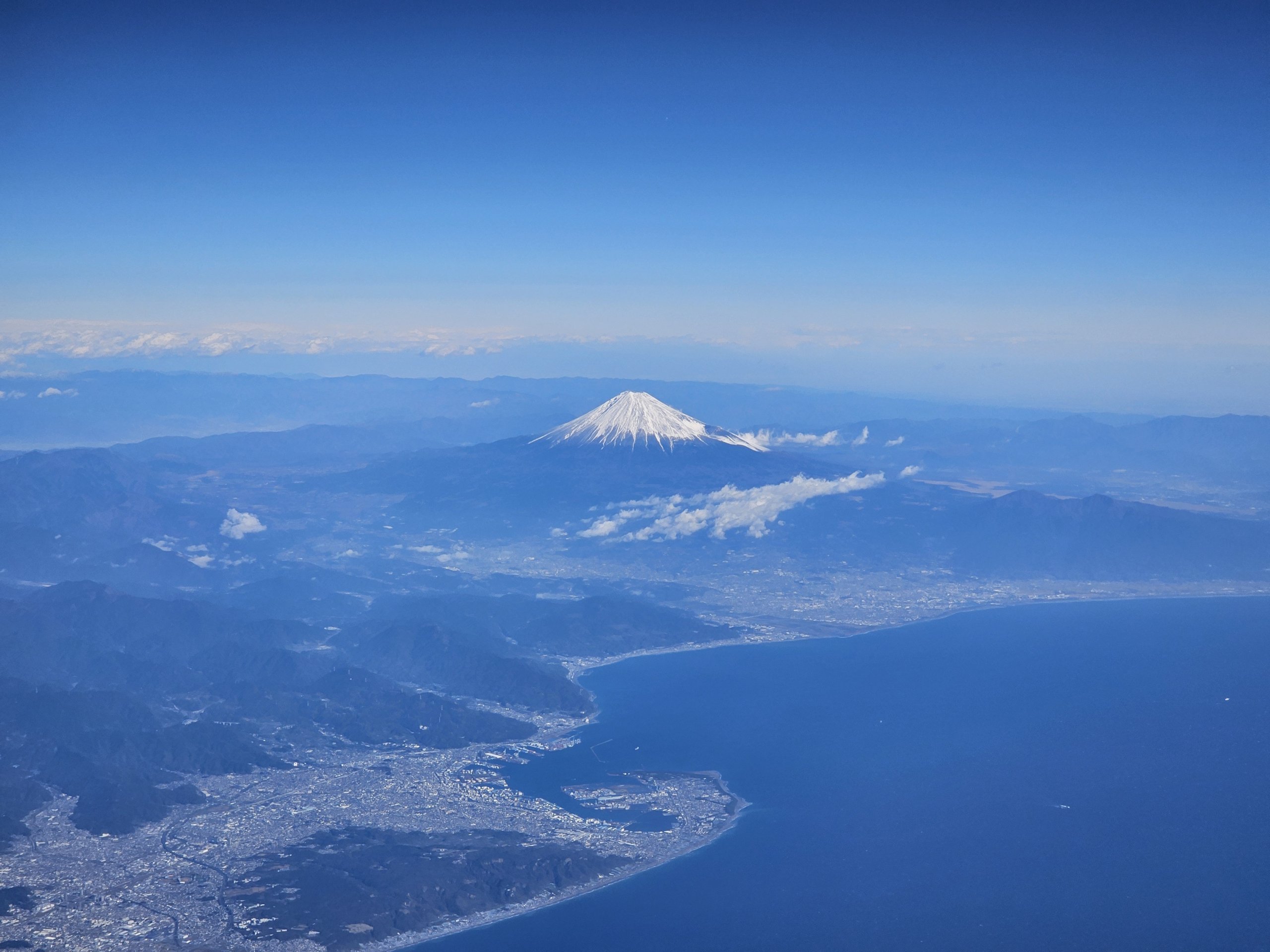 Il Monte Fuji è spesso facile da vedere da un aereo, soprattutto quando si arriva all'aeroporto di Haneda da ovest, in genere da Europa, Corea, Cina o città giapponesi a ovest di Tokyo.