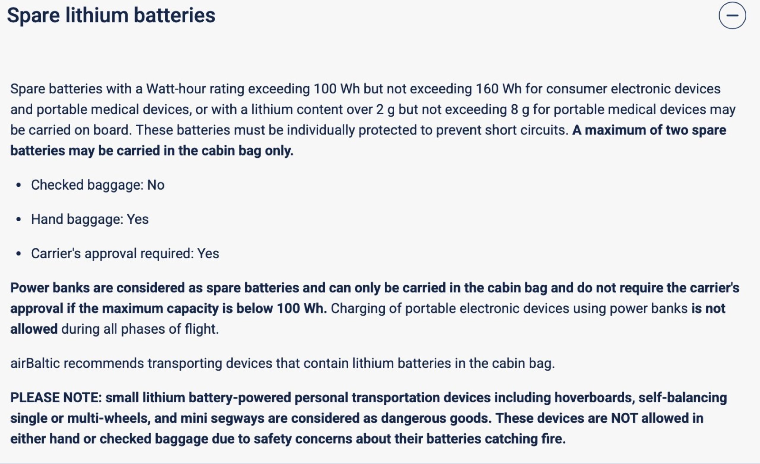 airBaltic vieta anche l'uso di power bank in volo: https://www.airbaltic.com/en/bag...strictions