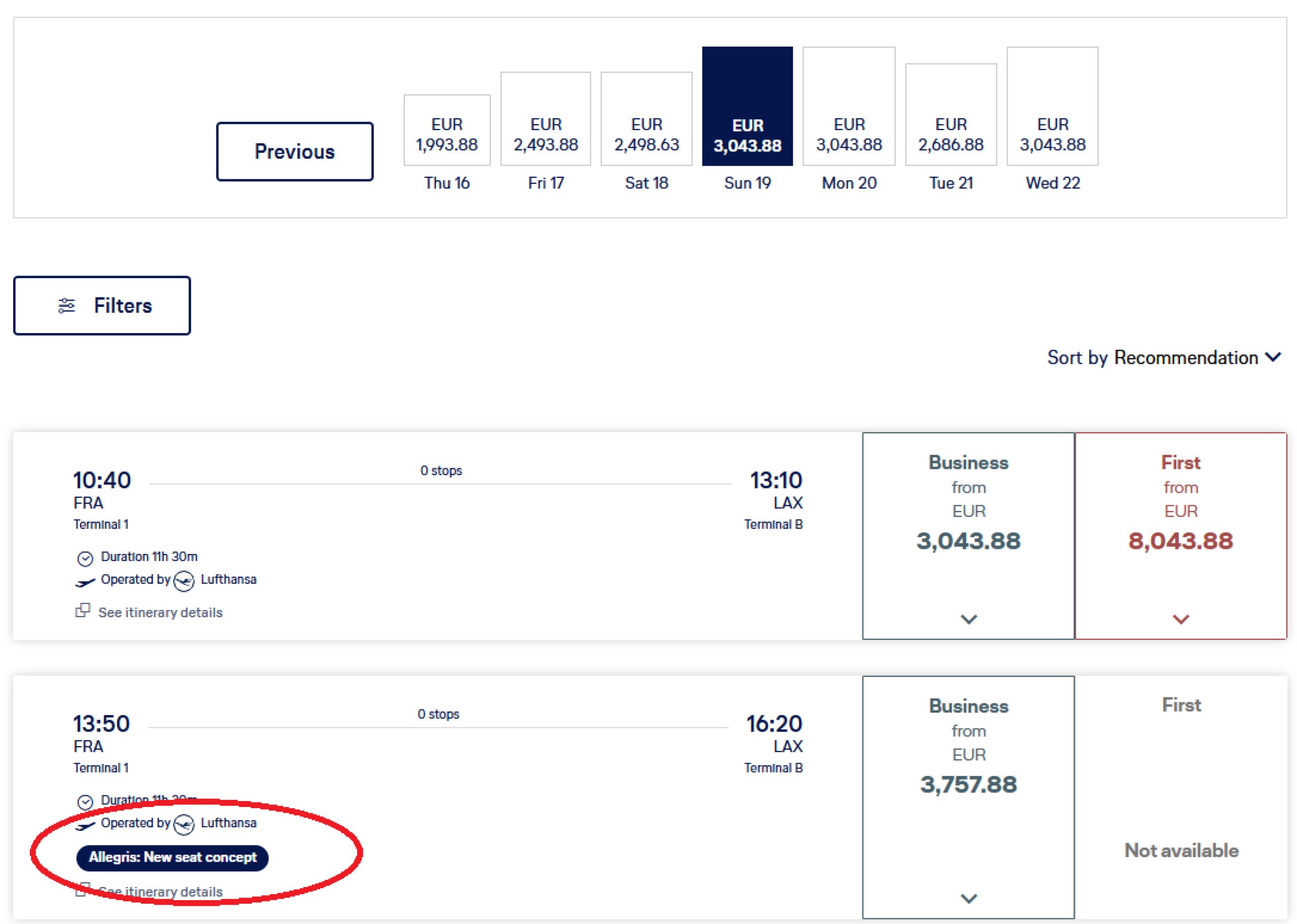 Dato che la maggior parte delle rotte Lufthansa è ancora in configurazione Business e First Class, è essenziale essere in grado di capire se si sta prenotando nella nuova Allegris.