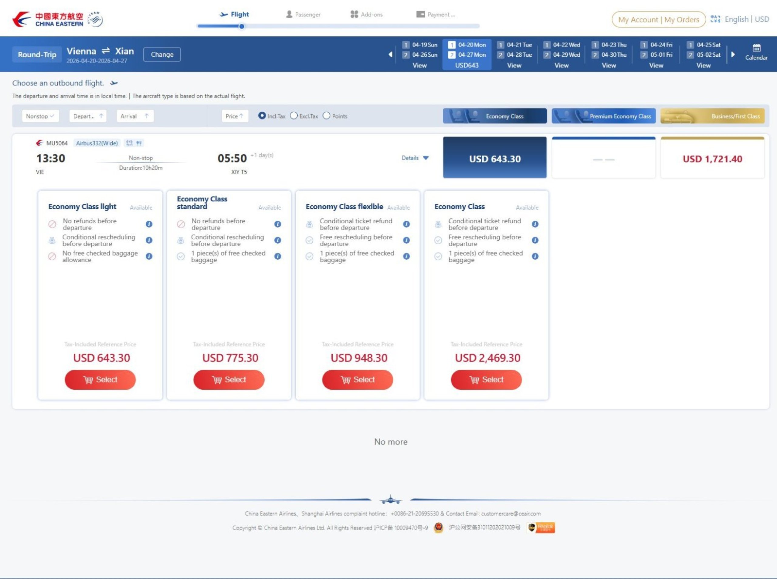 E China Eastern inizierà a volare tra Vienna e Xi'an il 20 aprile.