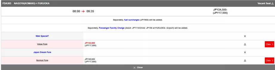 È possibile acquistare biglietti con Fuji Dream Airlines soprattutto quando si viaggia tra le regioni giapponesi e gli hub minori.
