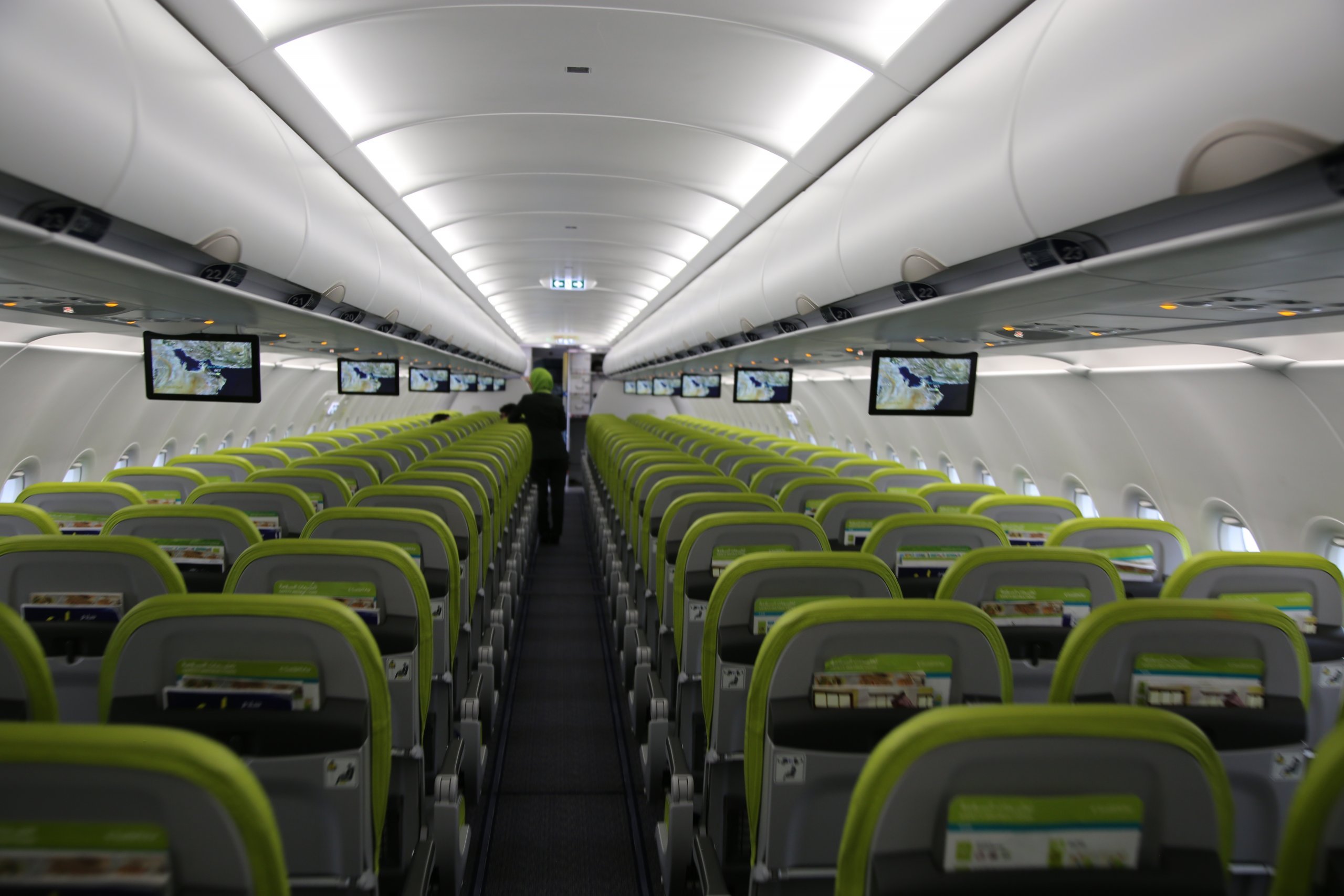 I sedili non contengono monitor individuali e ci sono solo alcuni schermi comuni che proiettano l'itinerario di volo durante il volo.