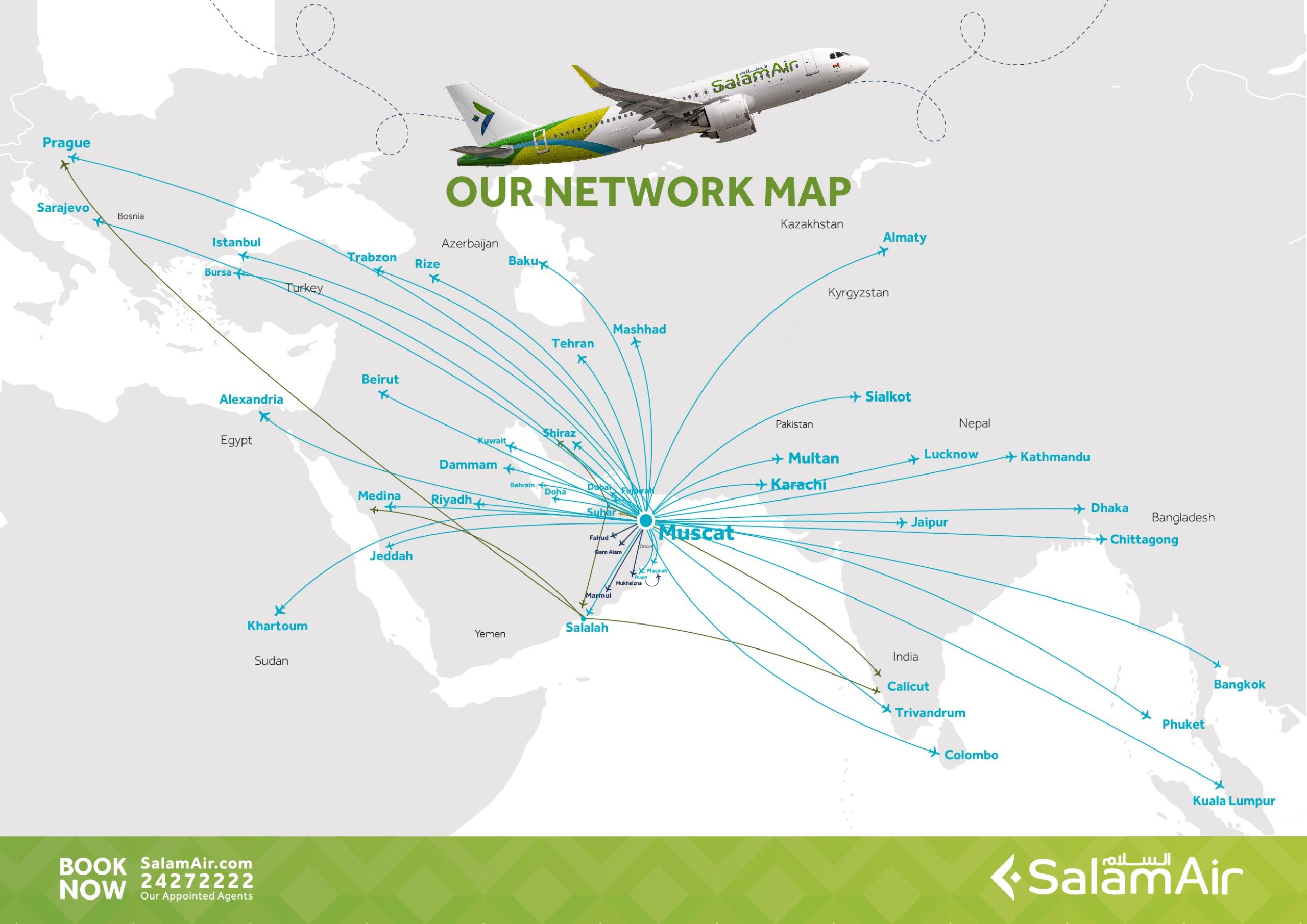 SalamAir opera voli di linea verso meno di una dozzina di destinazioni, principalmente nella regione dell'Asia sud-occidentale e centrale. Tuttavia, l'elenco delle destinazioni comprende anche città europee come Praga, Sarajevo e Istanbul. Le destinazioni più importanti dell'offerta di SalamAir sono le seguenti: