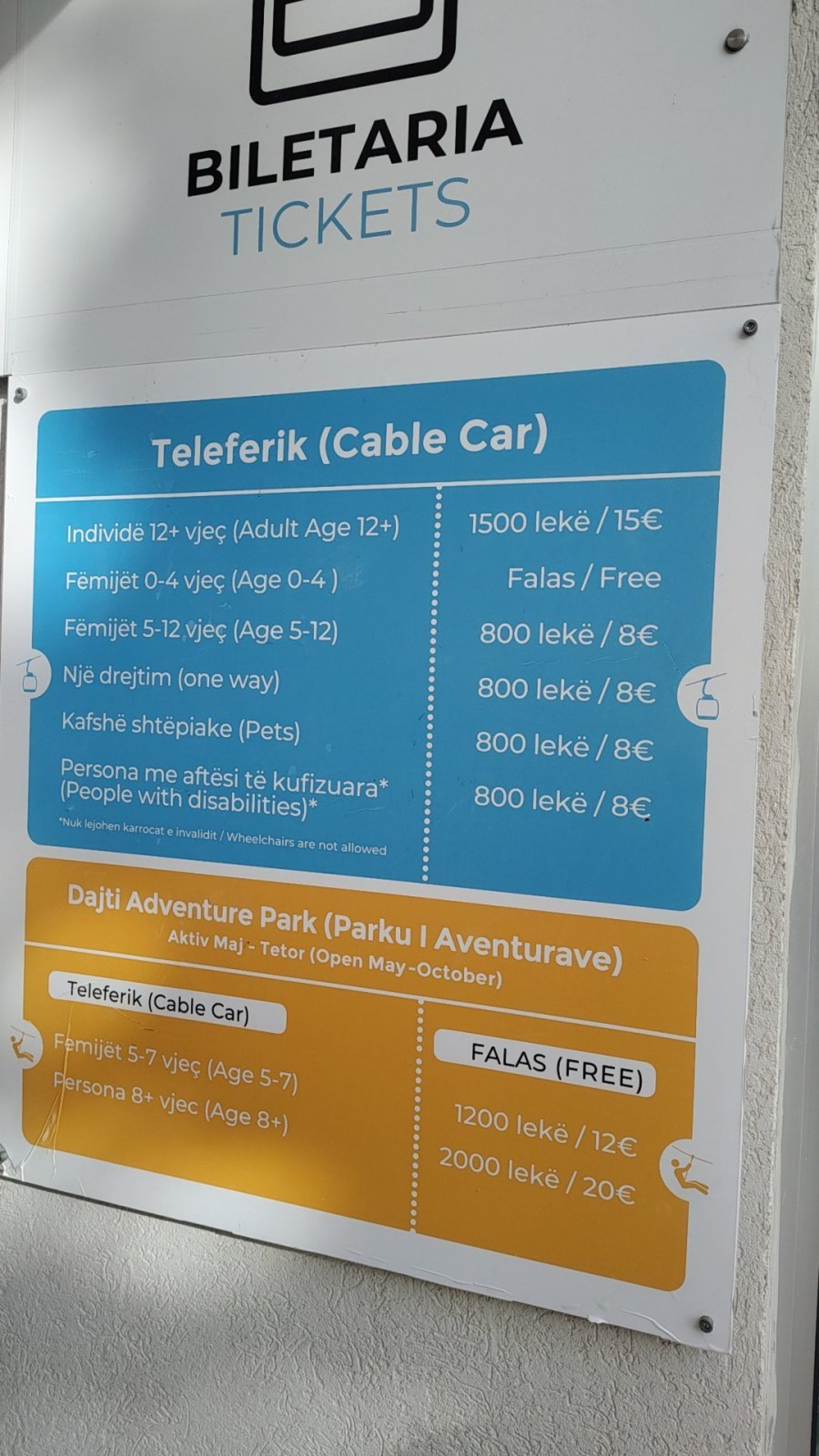 Solo per chiarire da novembre 2025 - il prezzo del biglietto di andata e ritorno è di 1500 Lek, quindi circa 385 CZK. La funivia dice che il viaggio dura 15 minuti, in realtà è di circa 19 minuti - è un viaggio molto lungo e se il tempo è bello, anche la vista è bella. È meglio andare al mattino, è meno affollato. L'autobus pubblico, come indicato, si ferma sotto l'ingresso del Bunk'Art 1 (se andate prima al bunker, come abbiamo fatto noi, chiedete all'addetto alla riscossione dei biglietti e si fermerà proprio all'ingresso). Dal bunker poi alla funivia si scende lungo il marciapiede e dopo circa 250 metri si gira a destra in salita e poi si prosegue per circa 300 metri (è segnalato da cartelli). Sulla strada per la stazione della funivia si incontra un piccolo negozio all'angolo dove si possono acquistare bibite fresche ecc. Il prezzo per 1,5 litri di una bibita alla pesca (simile alla Fanta) era credo di 140 Lek, circa 35 CZK.