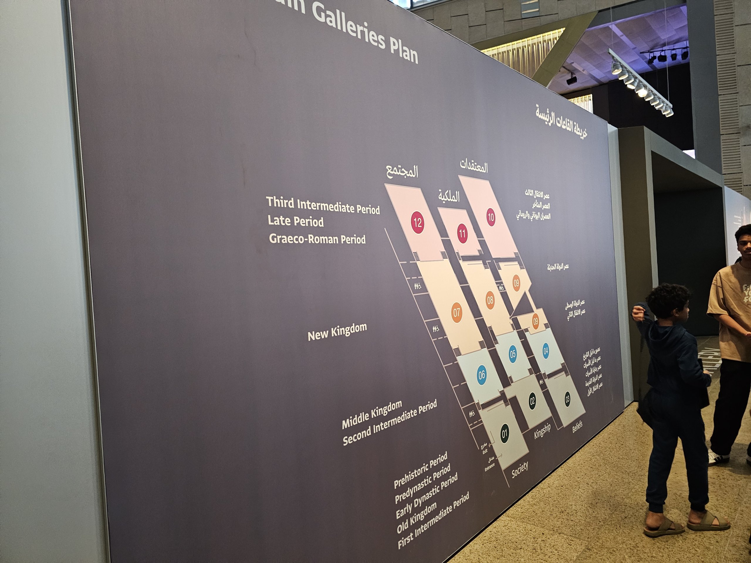 Un totale di 12 gallerie principali occupano la parte più grande, esponendo la maggior parte dei manufatti, da piccole statue a grandi frammenti di templi.