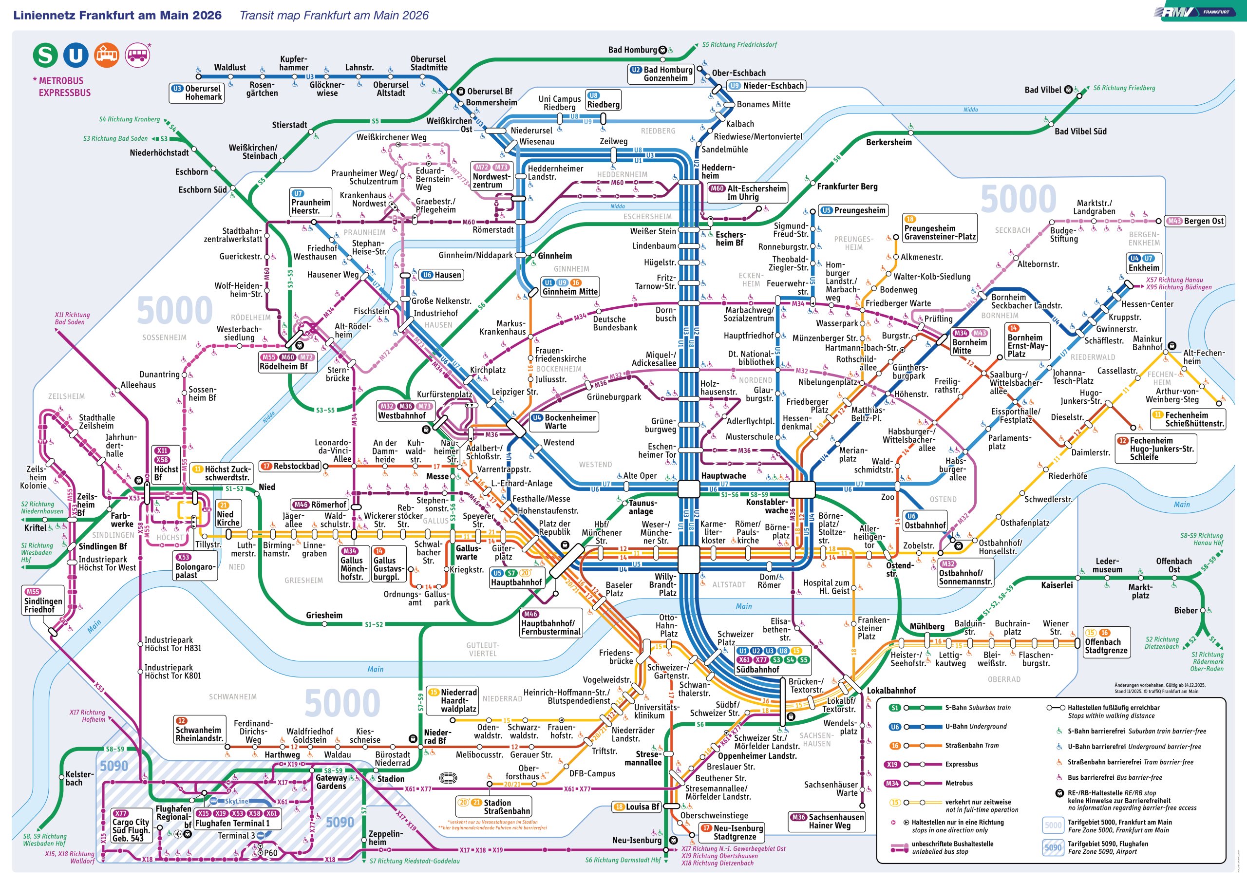 Tutti i biglietti possono essere utilizzati anche su tram, autobus e treni all'interno di Francoforte.