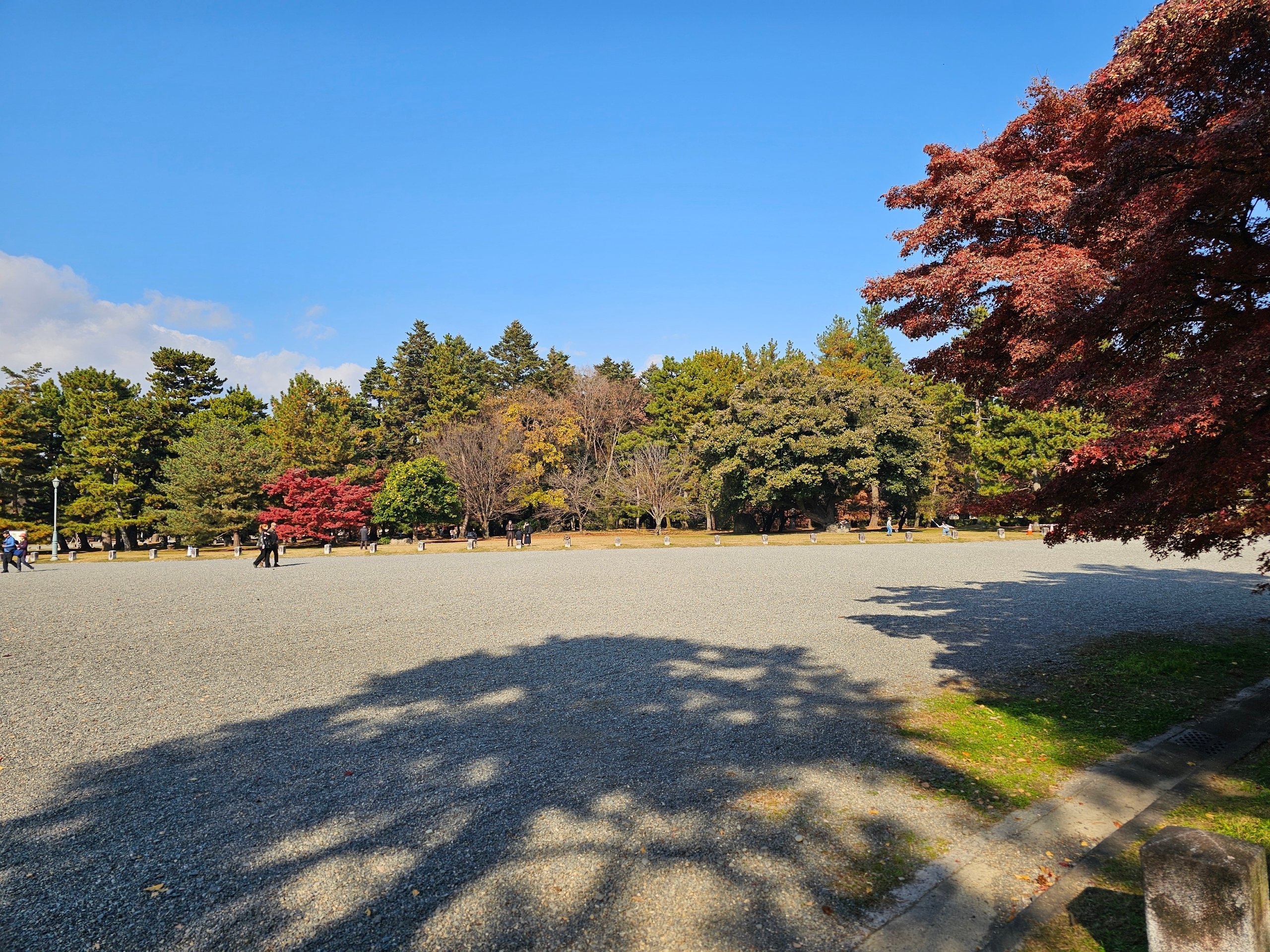 I giardini e il parco di Kyoto Gyoen formano un ampio spazio verde, ideale per una passeggiata tranquilla tra una visita e l'altra ai luoghi più frequentati.