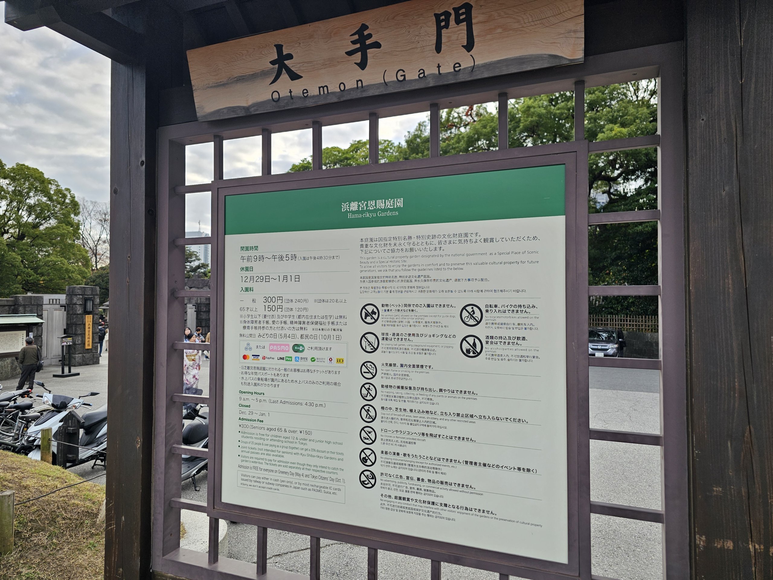L'ingresso ai Giardini Hama-rikyu costa 300 jpy.