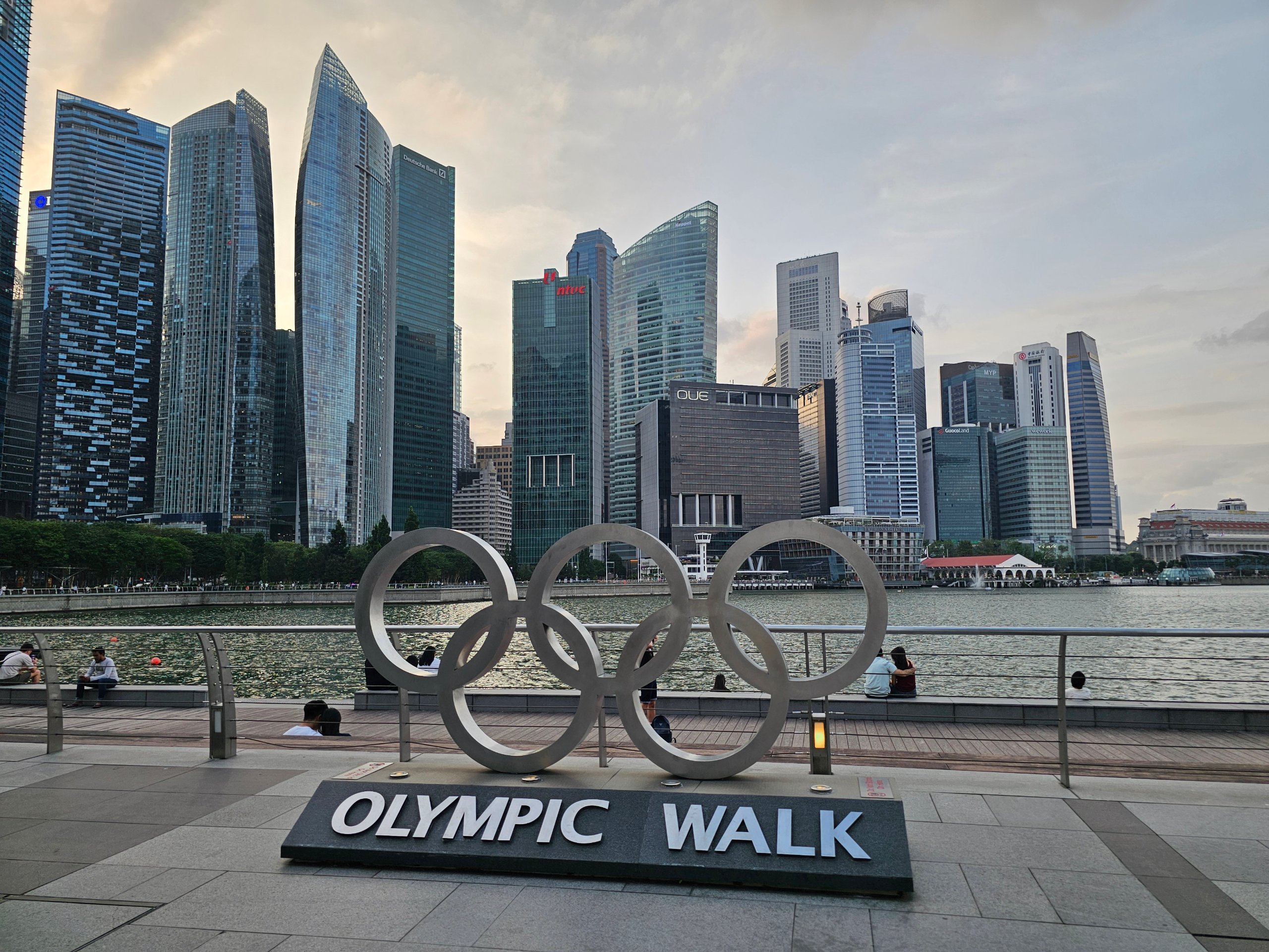 L'ampia passeggiata pedonale con palme, una parte della quale è chiamata Olympic Walk, è uno dei miei luoghi preferiti di Singapore.