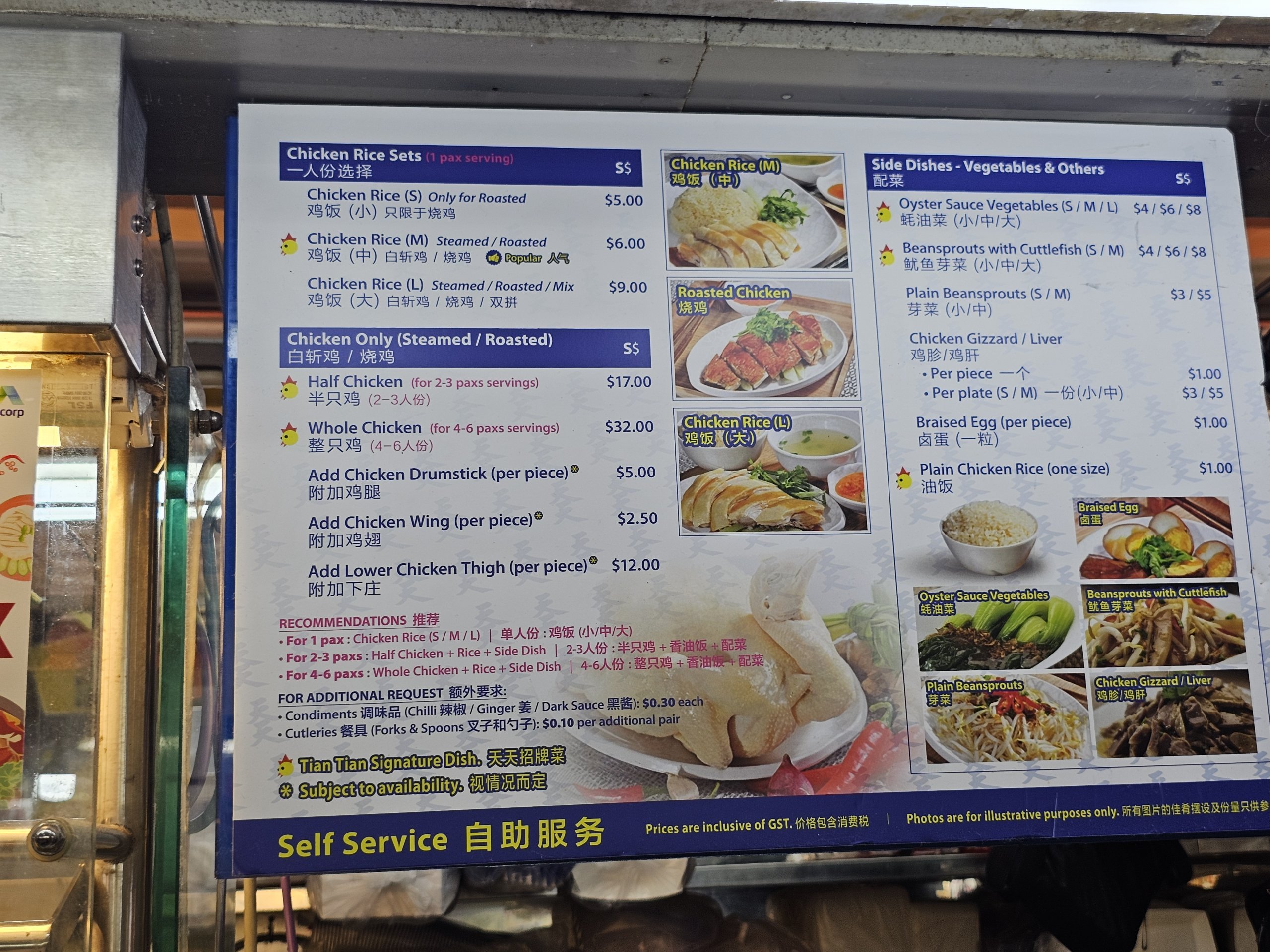 La più famosa è Tian Tian Hainanese Chicken Rice, una delle bancarelle più popolari di tutta Singapore. È qui che si può assaggiare il famoso riso al pollo hainanese, un piatto spesso definito come uno dei piatti nazionali di Singapore.