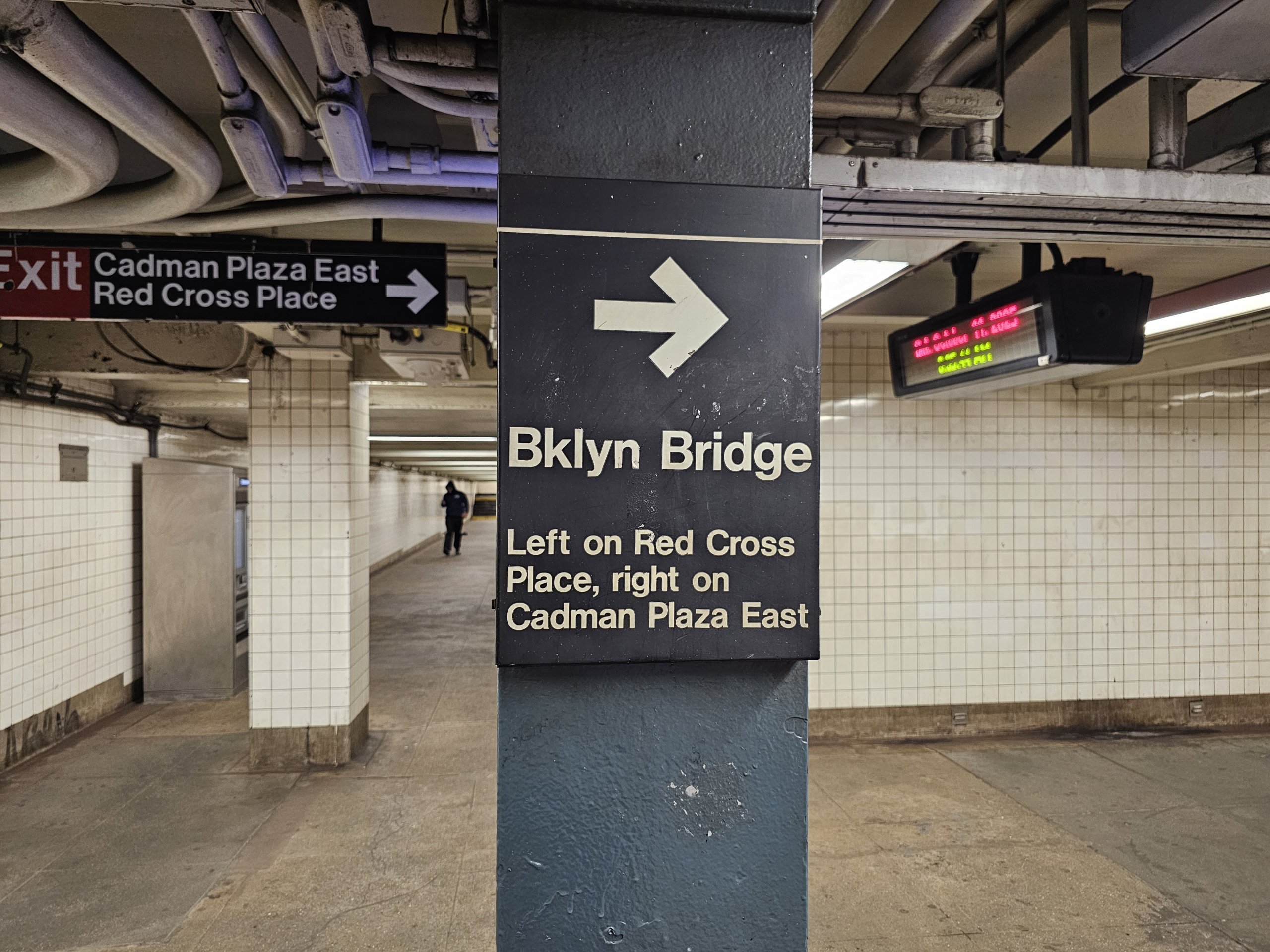 Si consiglia di utilizzare la stazione di High Street, che è la più vicina e da cui partono le indicazioni dirette per il ponte di Brooklyn.