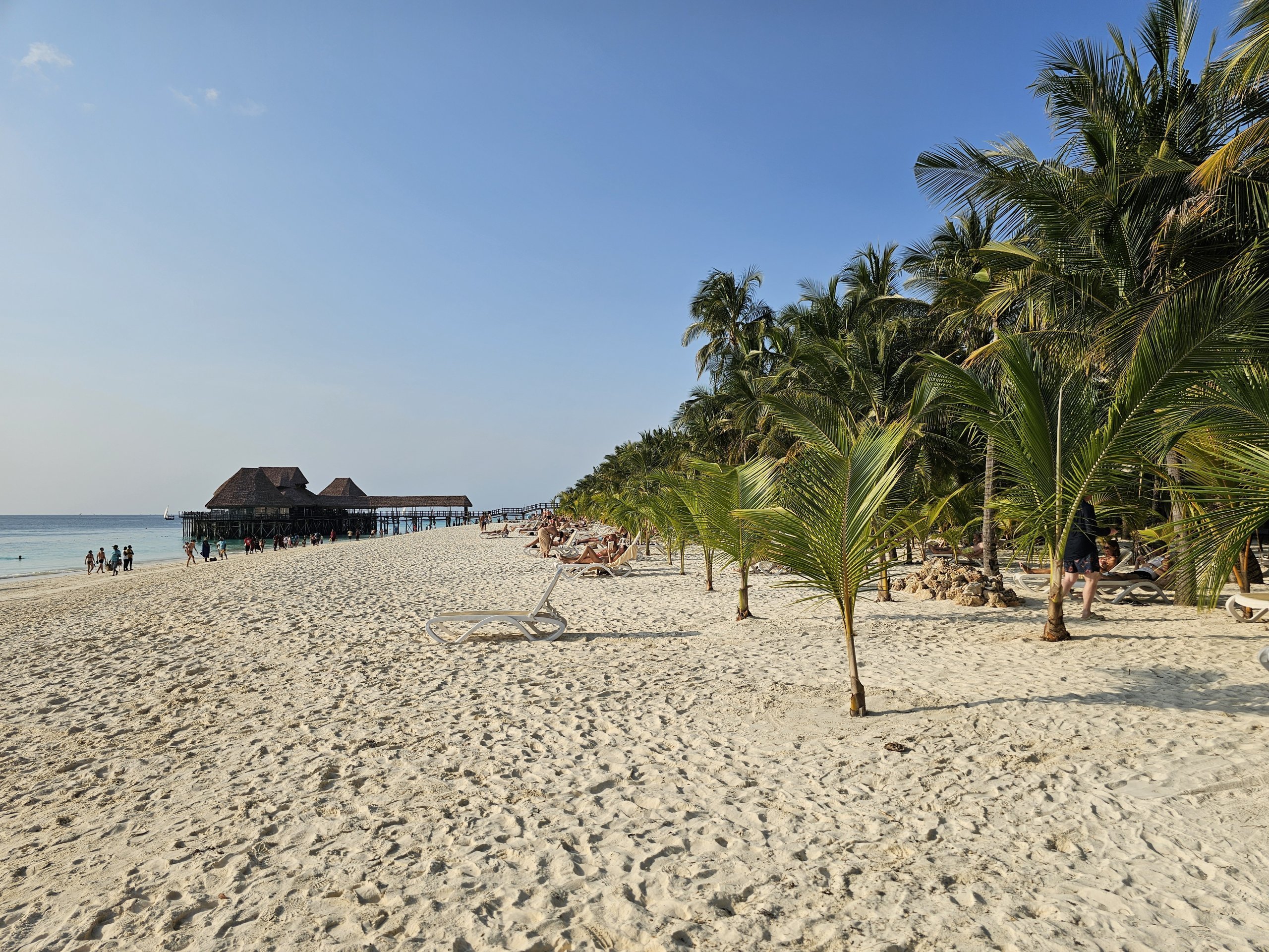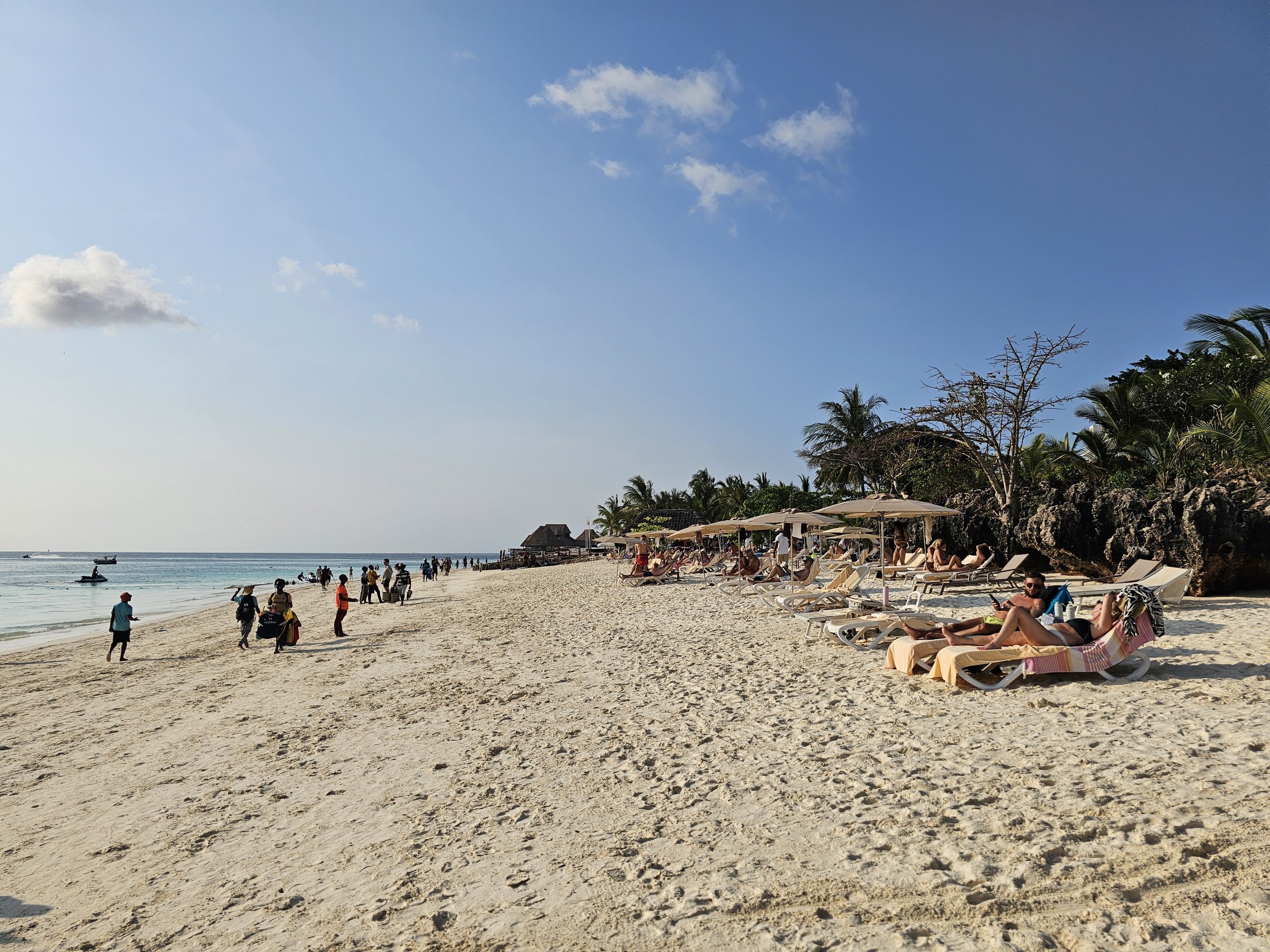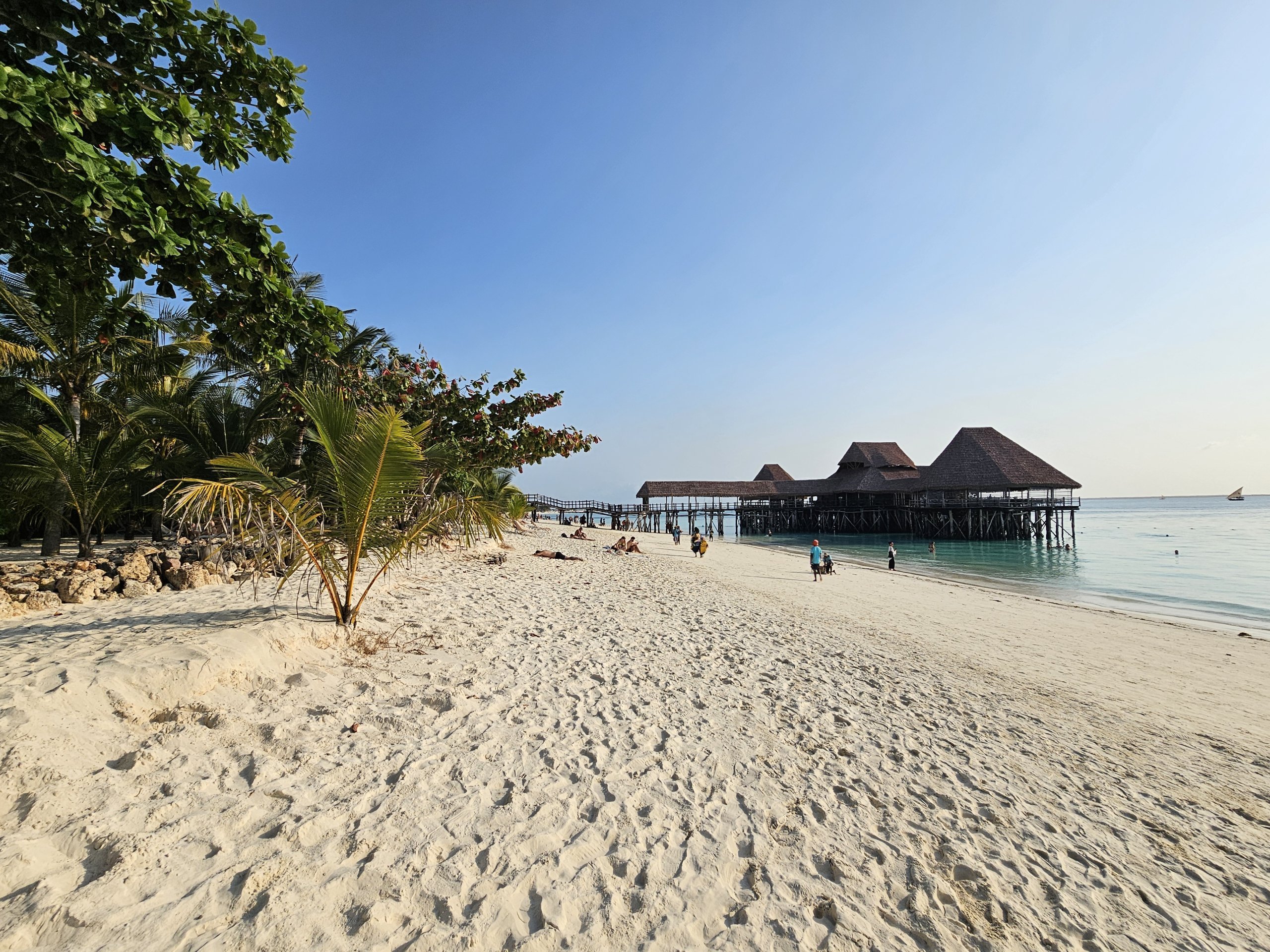 La spiaggia locale è sicuramente la più bella che ho visitato a Zanzibar e si può nuotare in mare anche durante la bassa marea, a differenza delle spiagge della costa orientale.