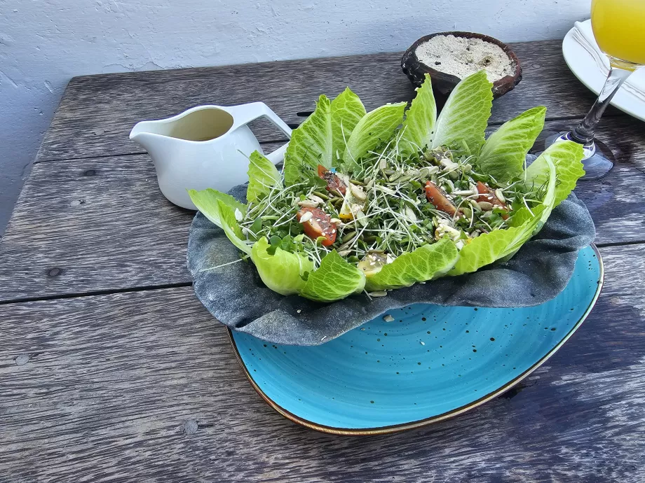 Come antipasto ho scelto un'insalata tipica locale con semi di sesamo e pane. Era ottima!
