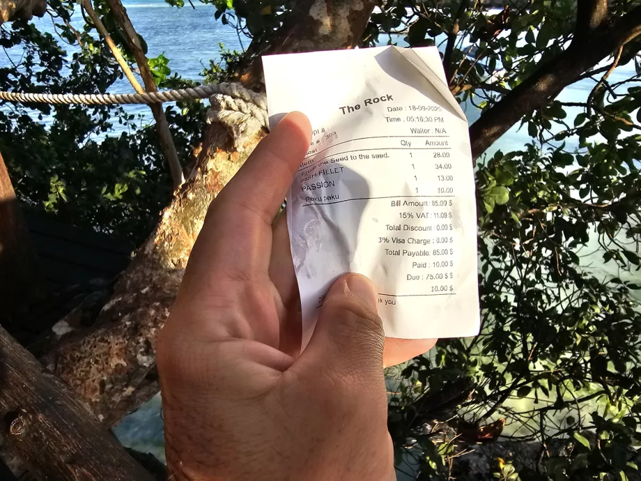 Consiglio di indossare le classiche scarpe da spiaggia, ovvero infradito o ciabatte. Non è possibile salire sulla barca con i piedi asciutti e anche se si cammina sulla passerella durante la bassa marea, può arrivare un'onda. Le infradito sono sicuramente le calzature più pratiche per visitare il ristorante!