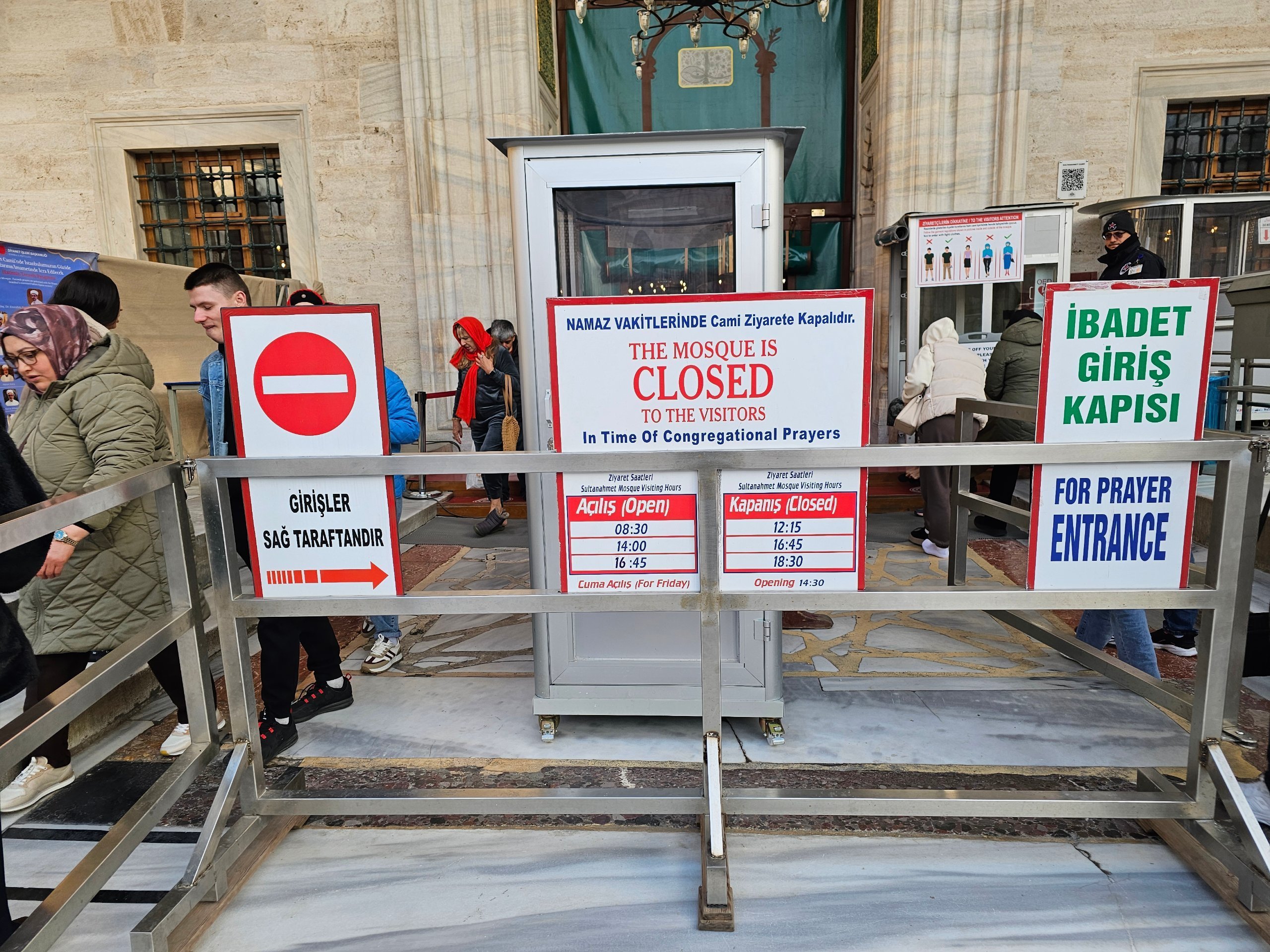 La moschea è sempre chiusa a tutti i non musulmani durante e un'ora prima delle preghiere.