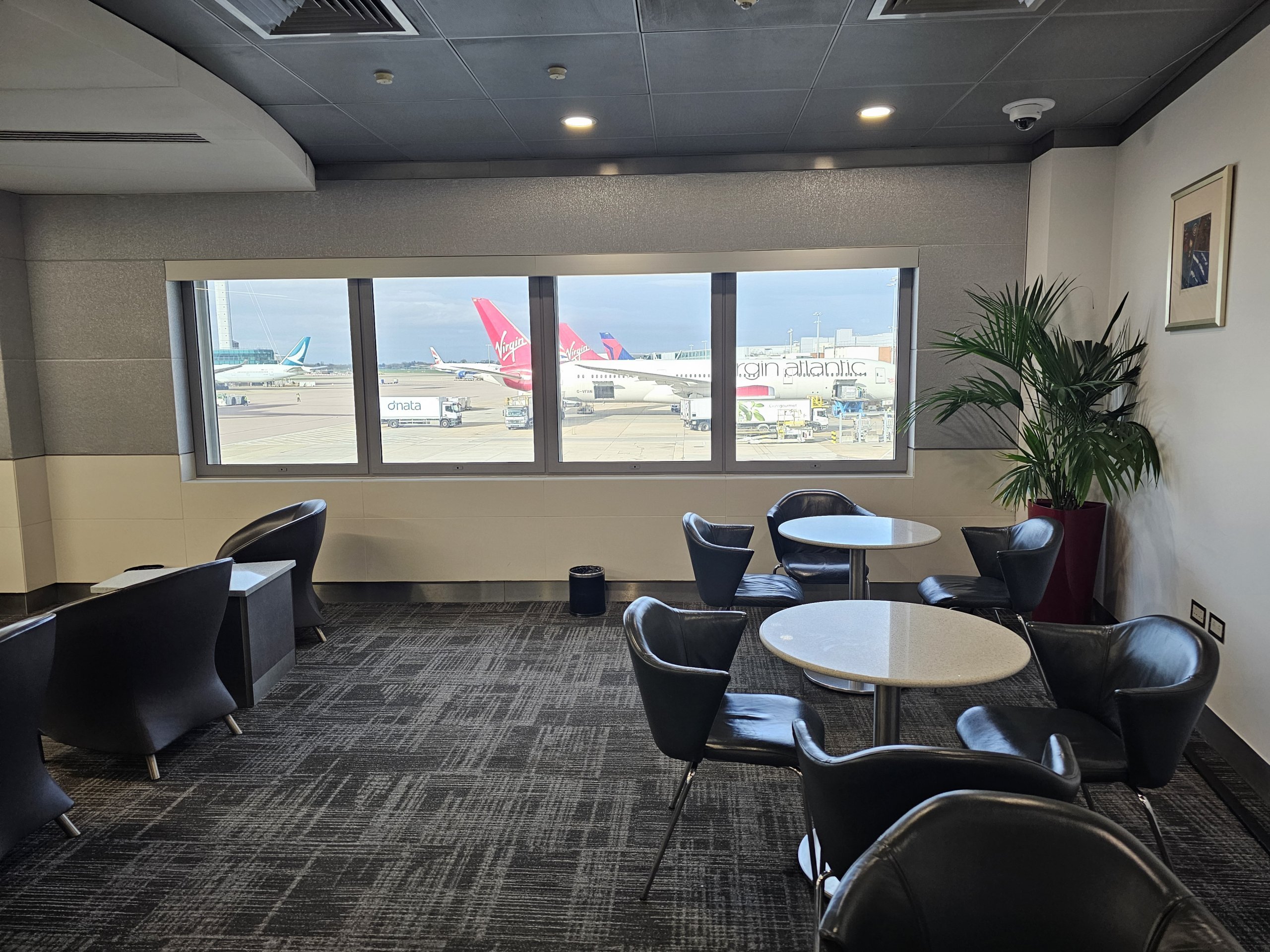 Un grande vantaggio è la vista sulla pista dell'aeroporto: ci sono stand di grandi aerei a lungo raggio proprio di fronte alla lounge e da qui si può vedere anche l'iconica torre dell'aeroporto di Heahtrow.