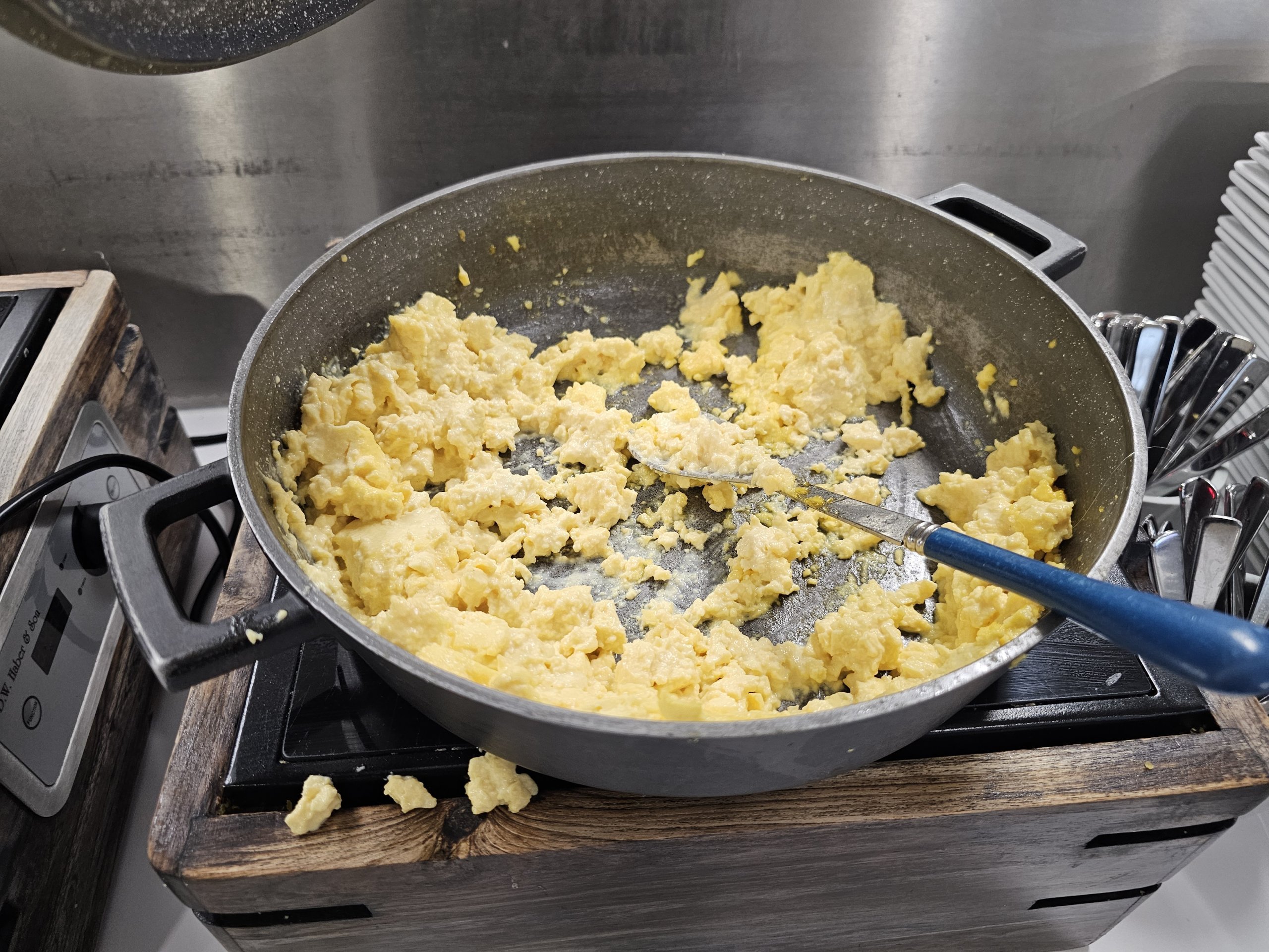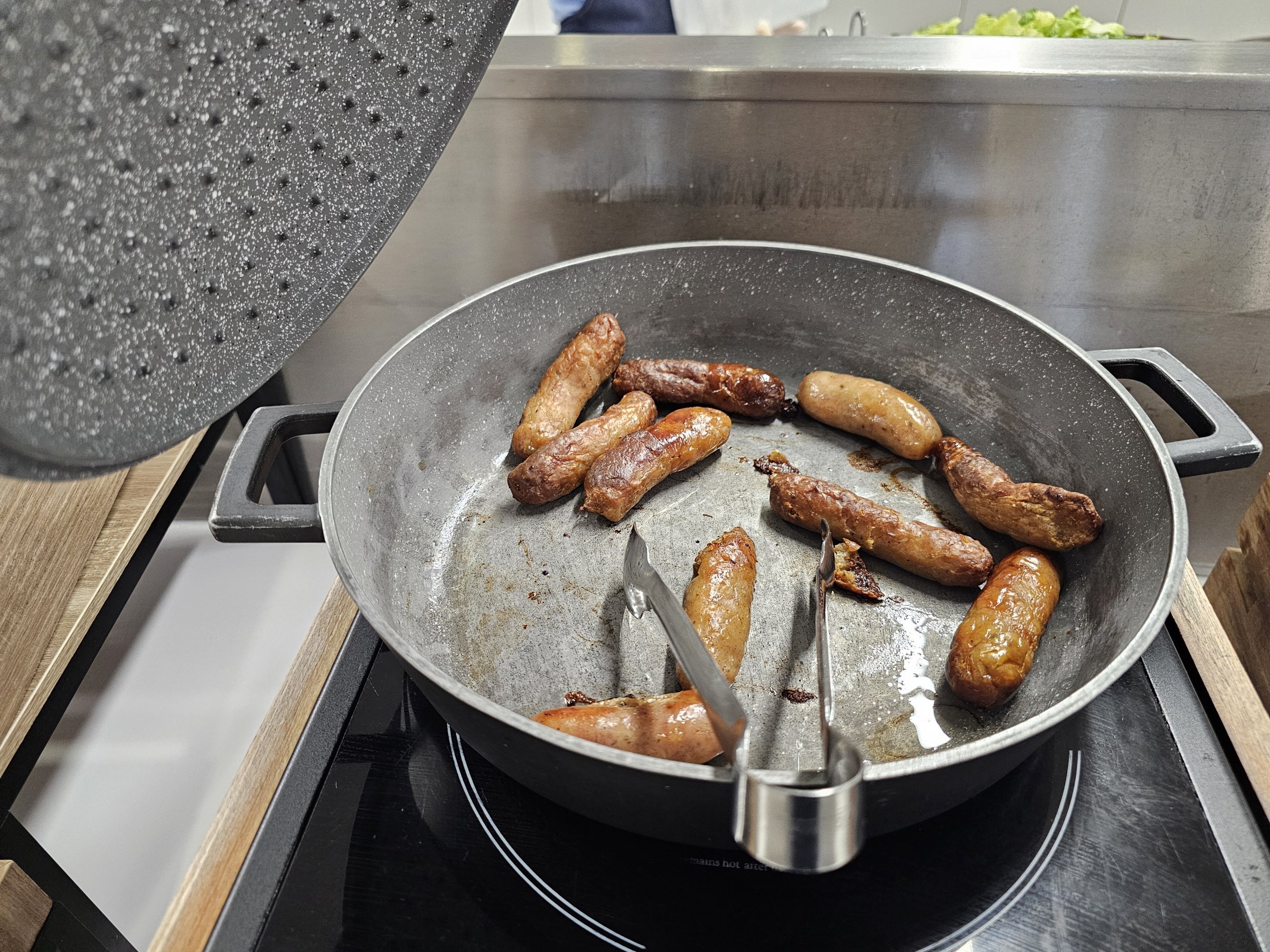 A colazione c'è il classico trio di uova strapazzate, pancetta e salsicce. Inoltre, di solito ci sono fagioli o pomodori.