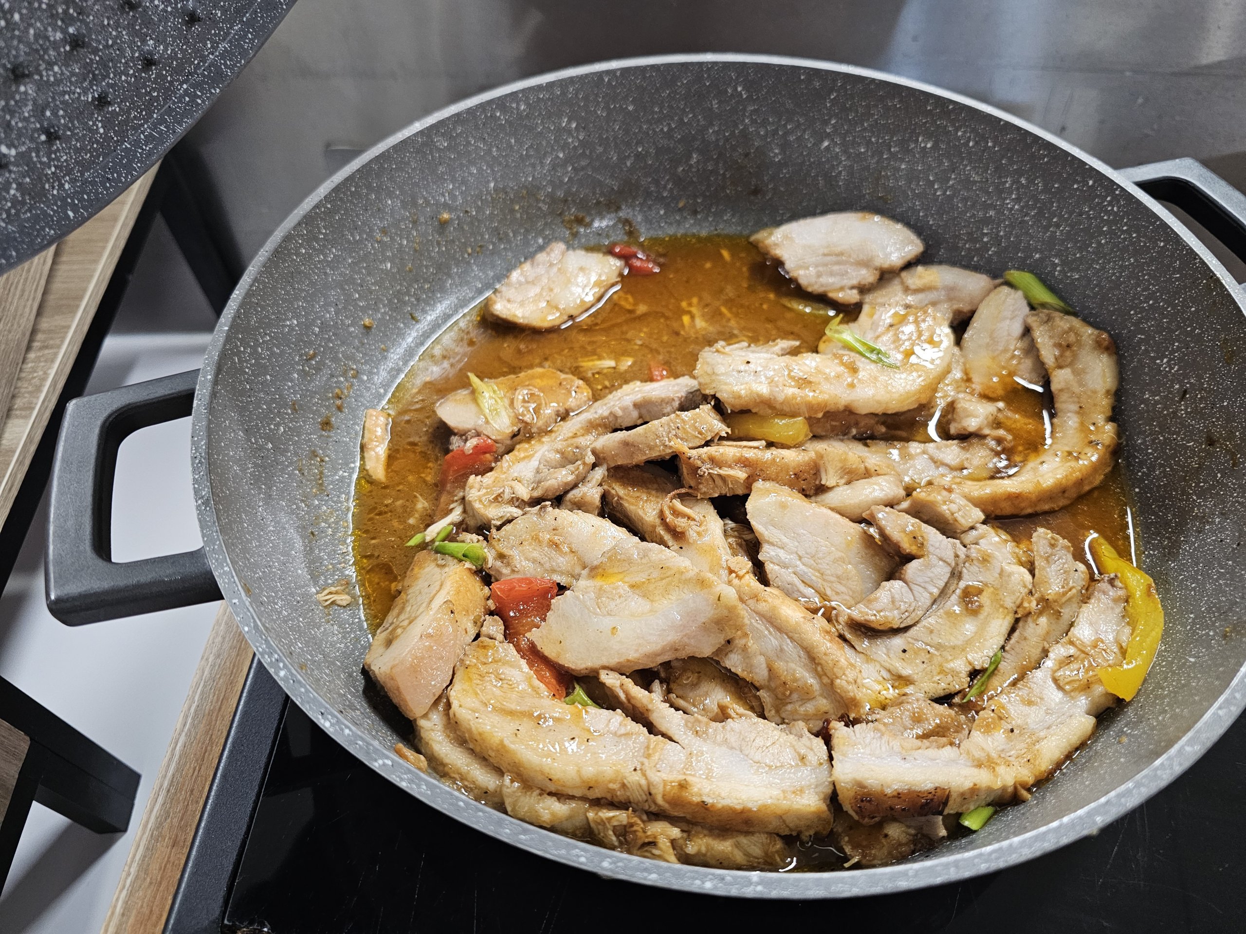 Il menu del pranzo del giorno della nostra visita comprendeva patate bollite, pasta con funghi e carne di maiale molto grassa.