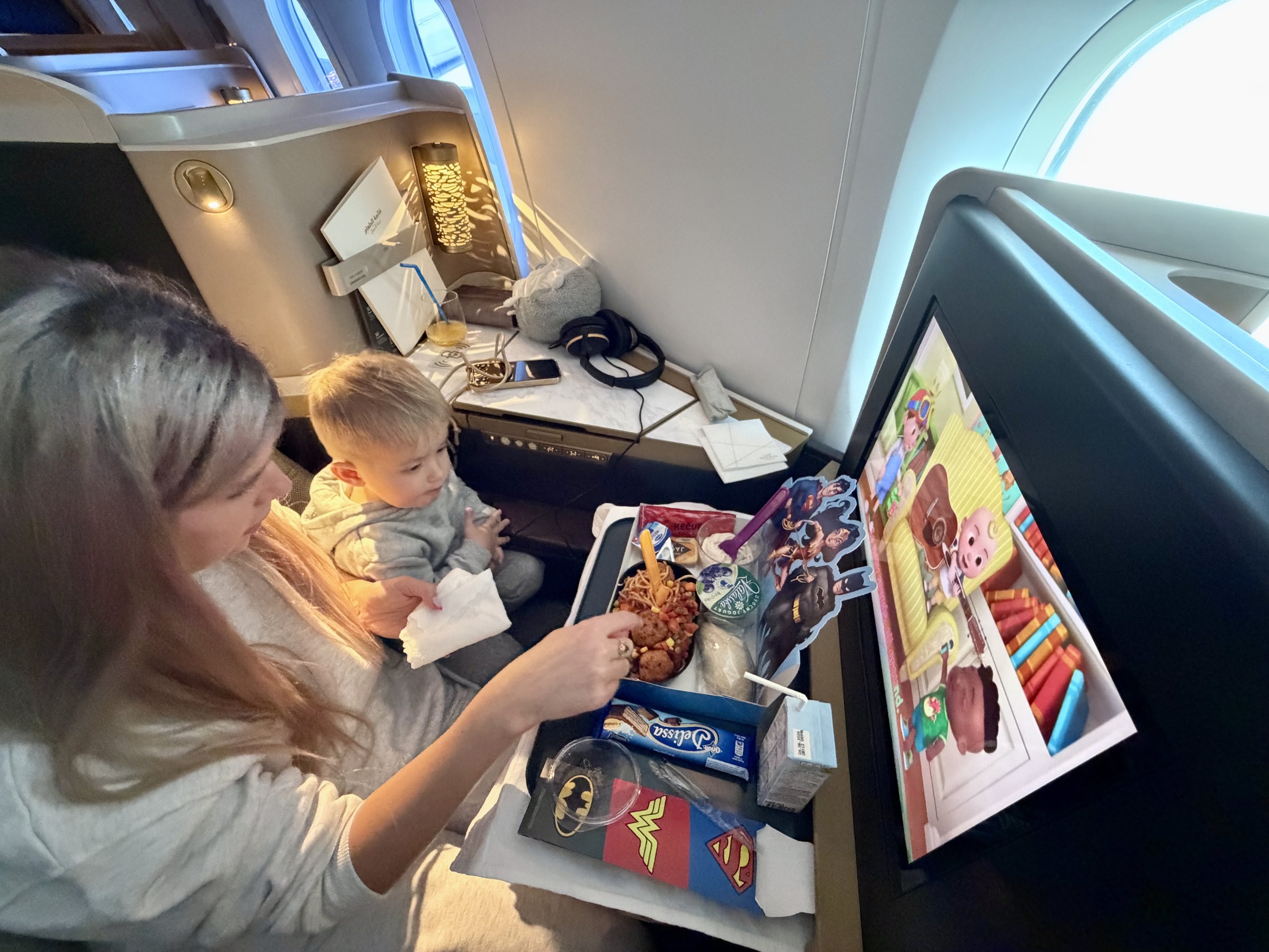 Per quanto riguarda i bambini, ho concluso che la prossima volta preferiremo volare in economy premium quando saremo tutti esattamente nella stessa fila. Per noi genitori è stato piuttosto scomodo. Dopotutto, a 2 e 5 anni i bambini non sono più indipendenti e bisogna sorvegliarli di più.