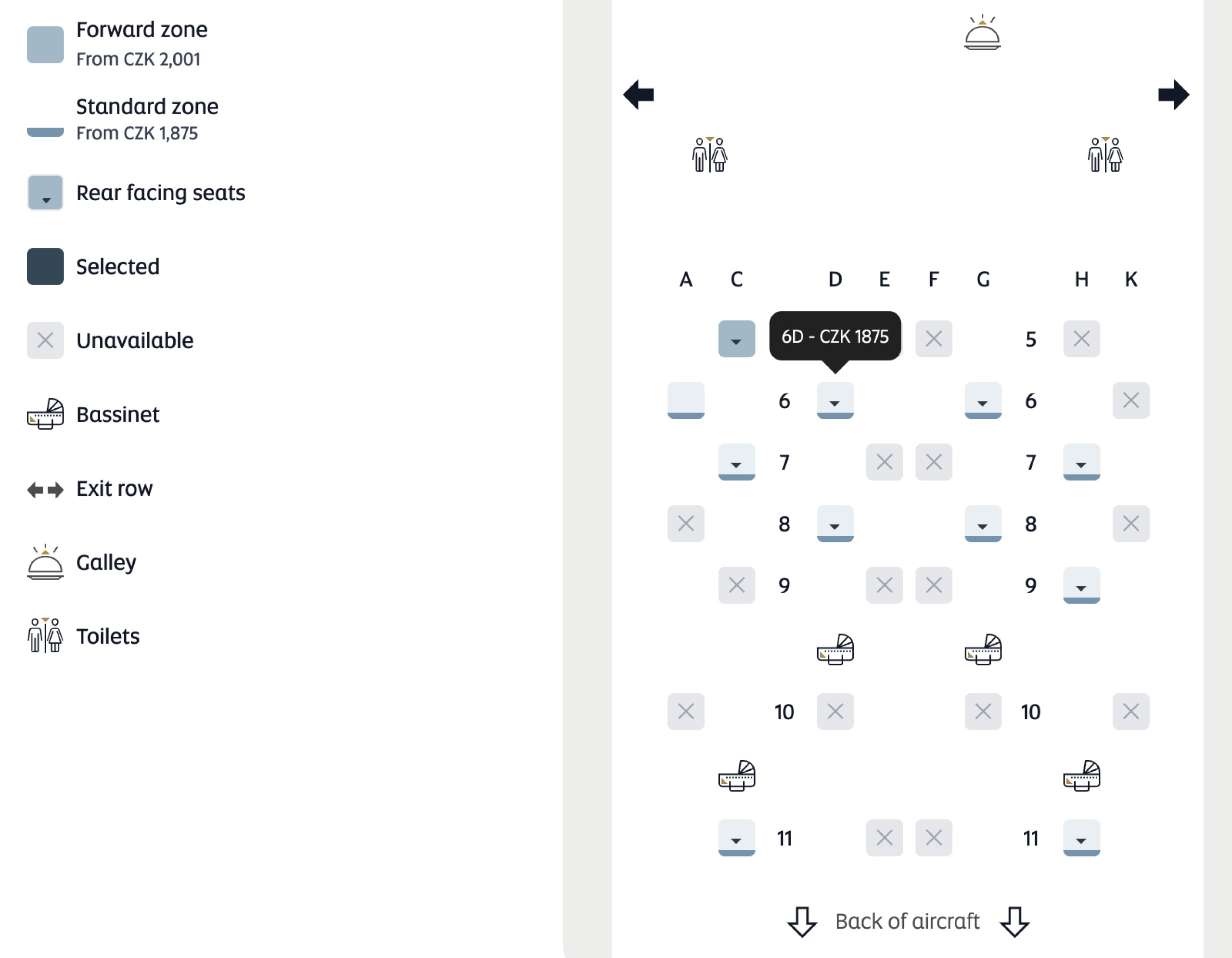 Quando richiediamo il cambio di posto, ci viene mostrato il nuovo posto che riflette il cambio di aereo, che è uguale a quello richiesto: due posti al finestrino e una fila centrale.