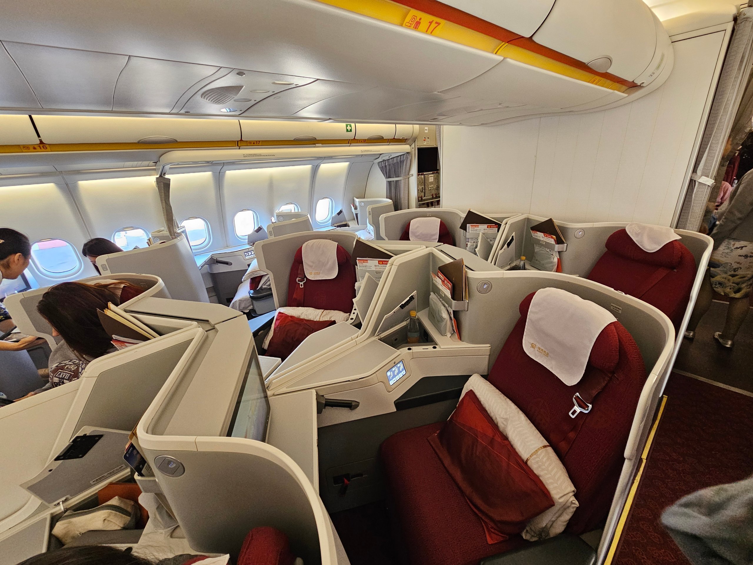 Hainan Airlines ha due tipi di configurazione 1-2-1 sui suoi Airbus A330-300, con accesso diretto al corridoio da tutti i sedili: