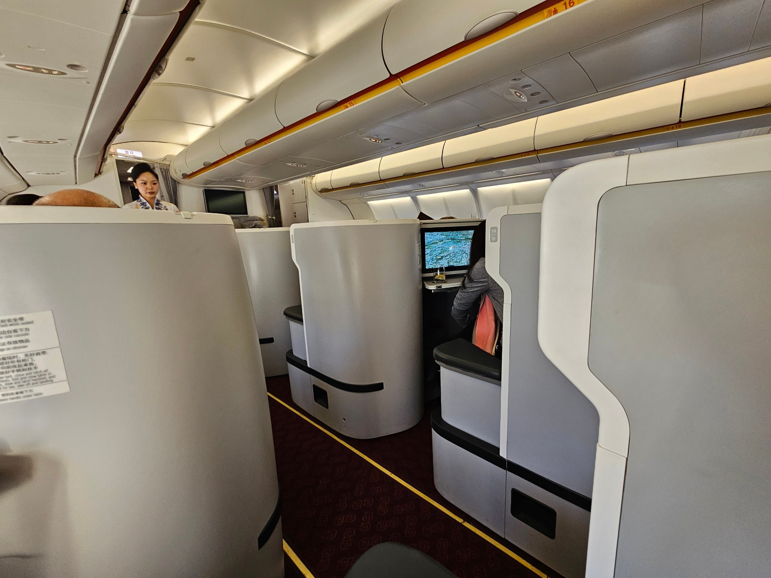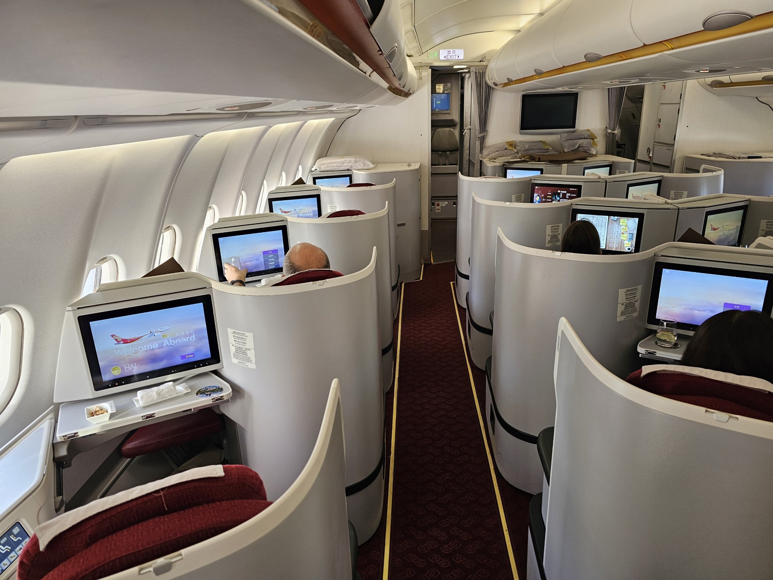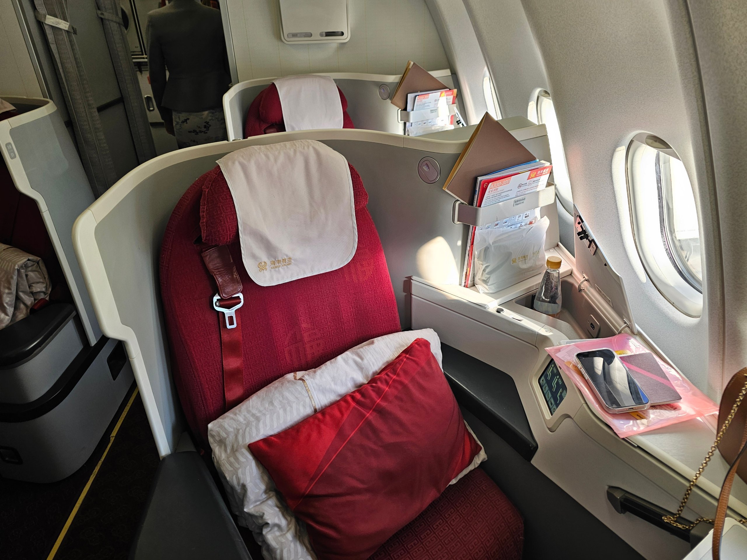 L'Airbus A330-300 di Hainan Airlines offre una solida privacy e un letto completamente piatto in classe business. Sono le cose fondamentali che fanno la differenza su un volo di 10 ore.