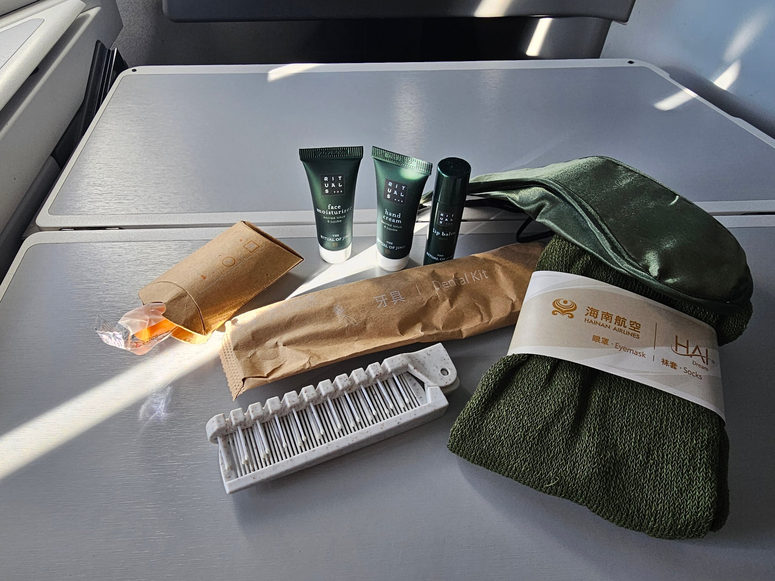 L'Amenity kit della classe business di Hainan Airlines è solido a prima vista, ma senza molta originalità.