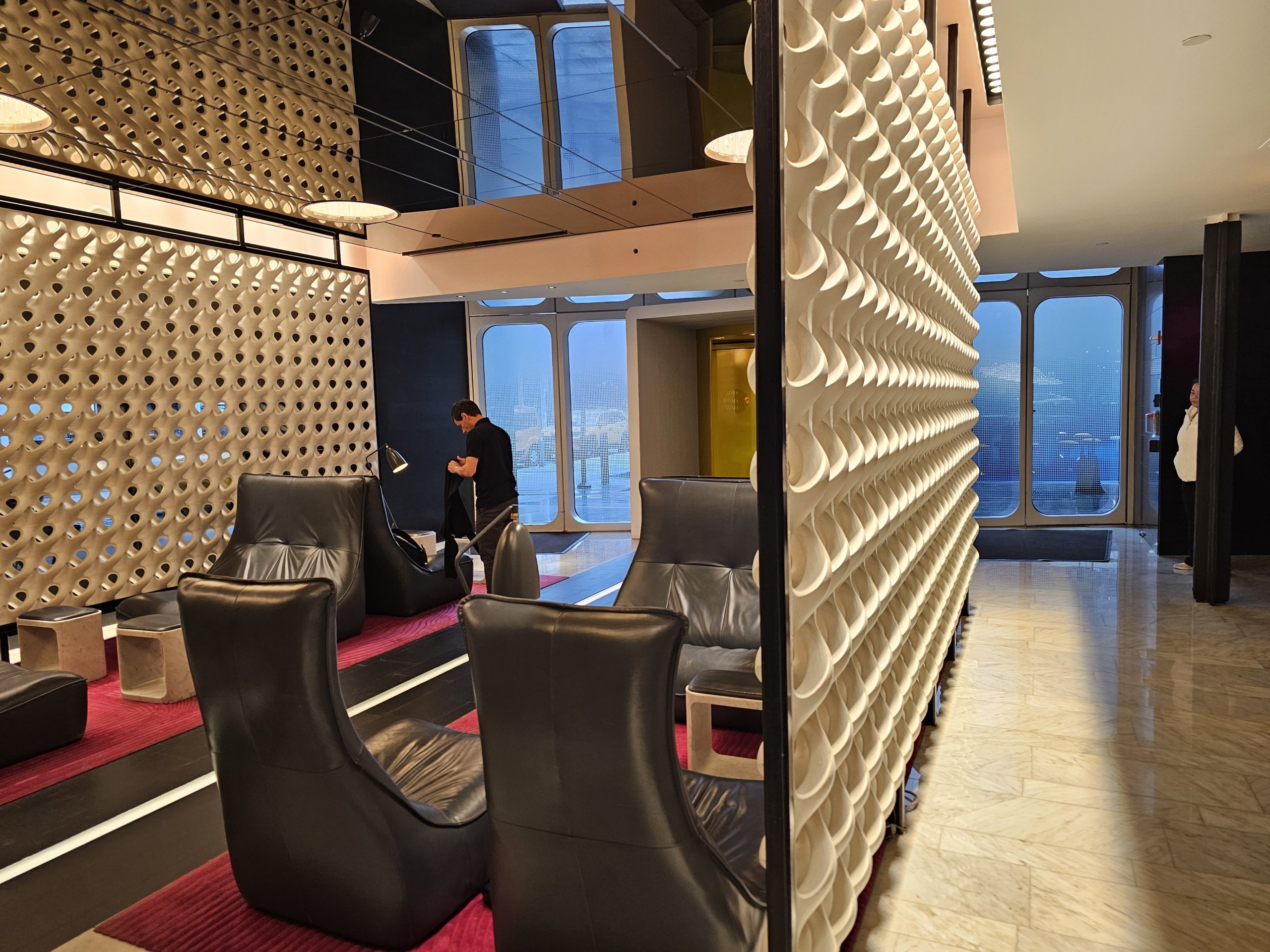 Il check-in è molto veloce e l'area della reception colpisce già per il suo design interessante.