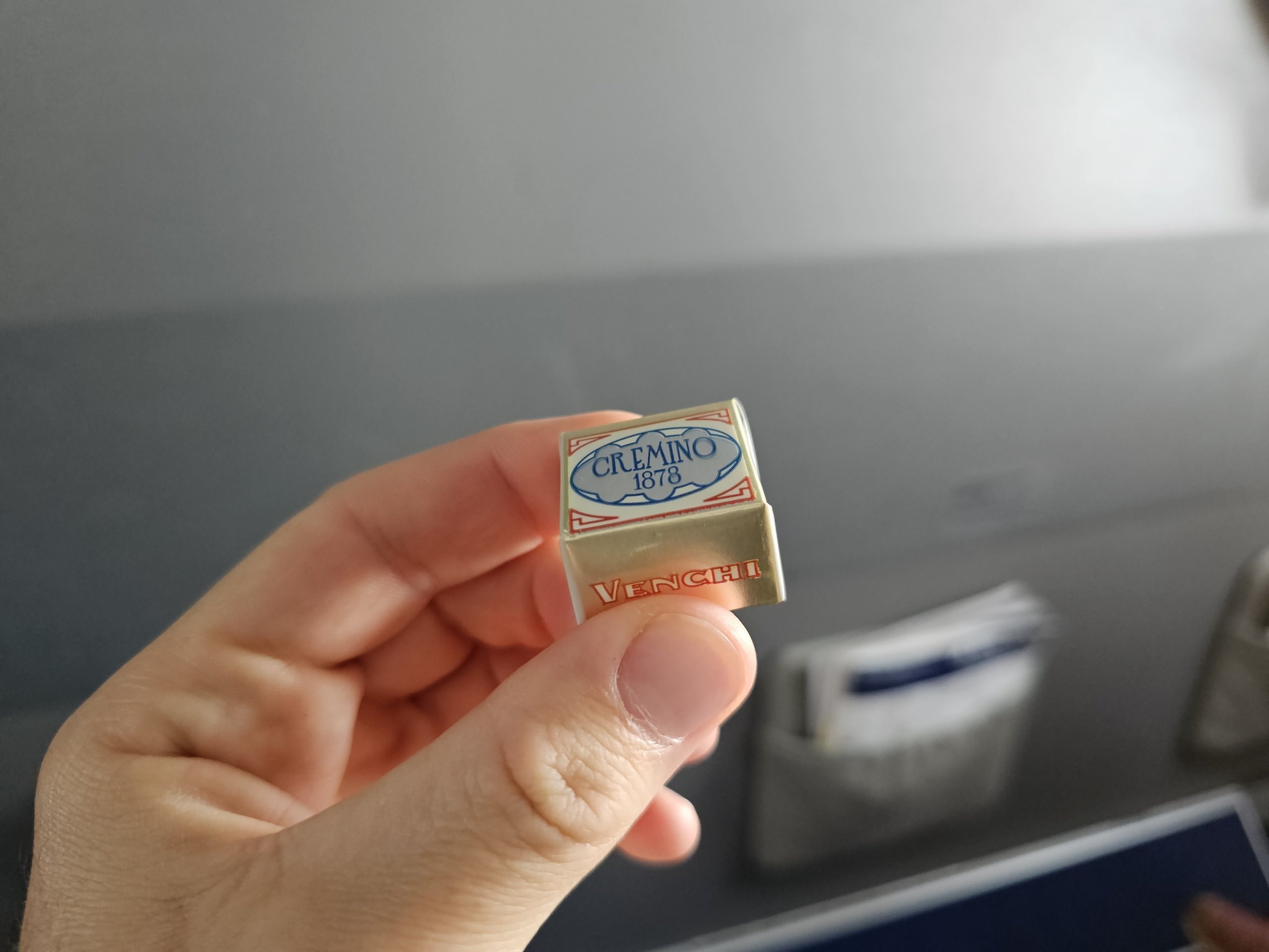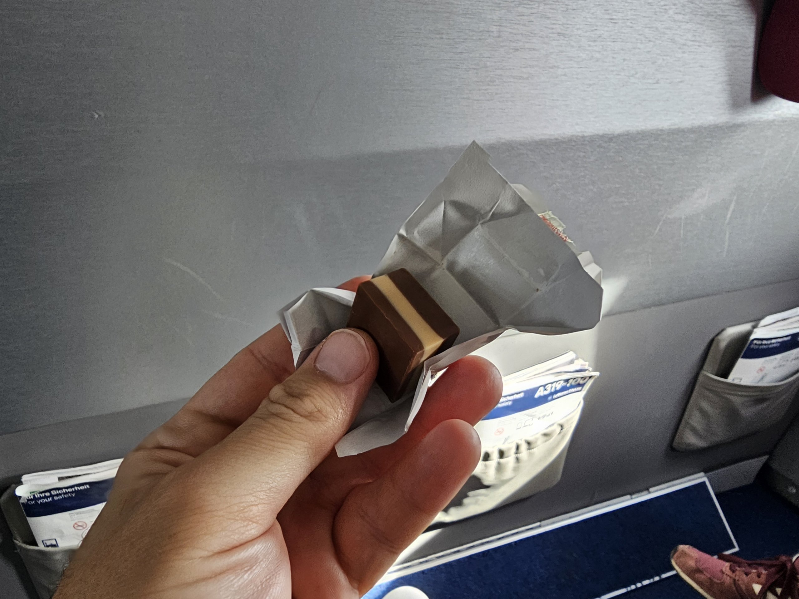 Poco prima dell'atterraggio riceviamo ancora un piccolo cioccolato alla moda.