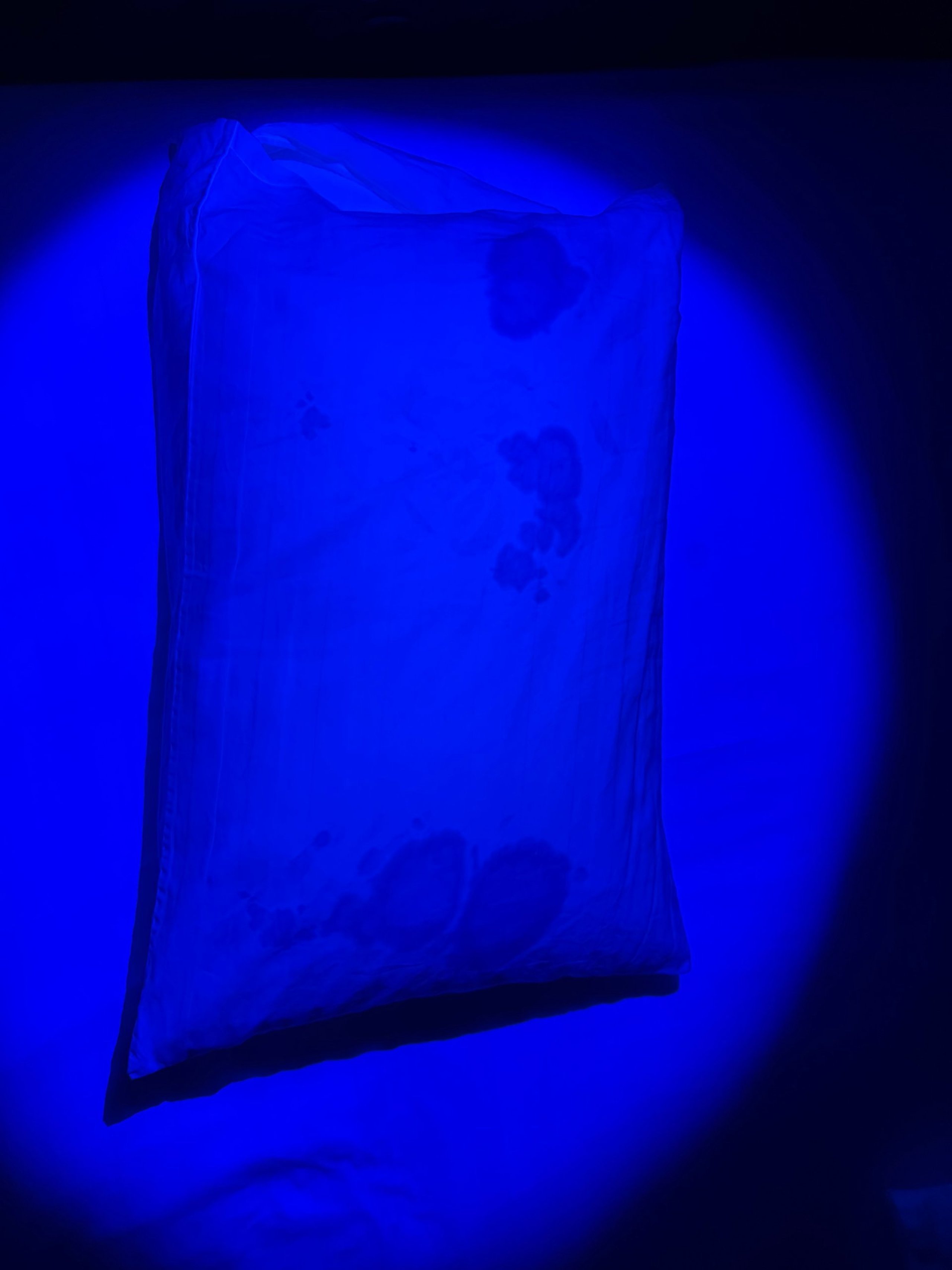 Sotto la luce UV (sì, abbiamo fatto il test 😄) c'erano strane macchie sul cuscino. Forse dovute a sangue o vino? Avete qualche consiglio?