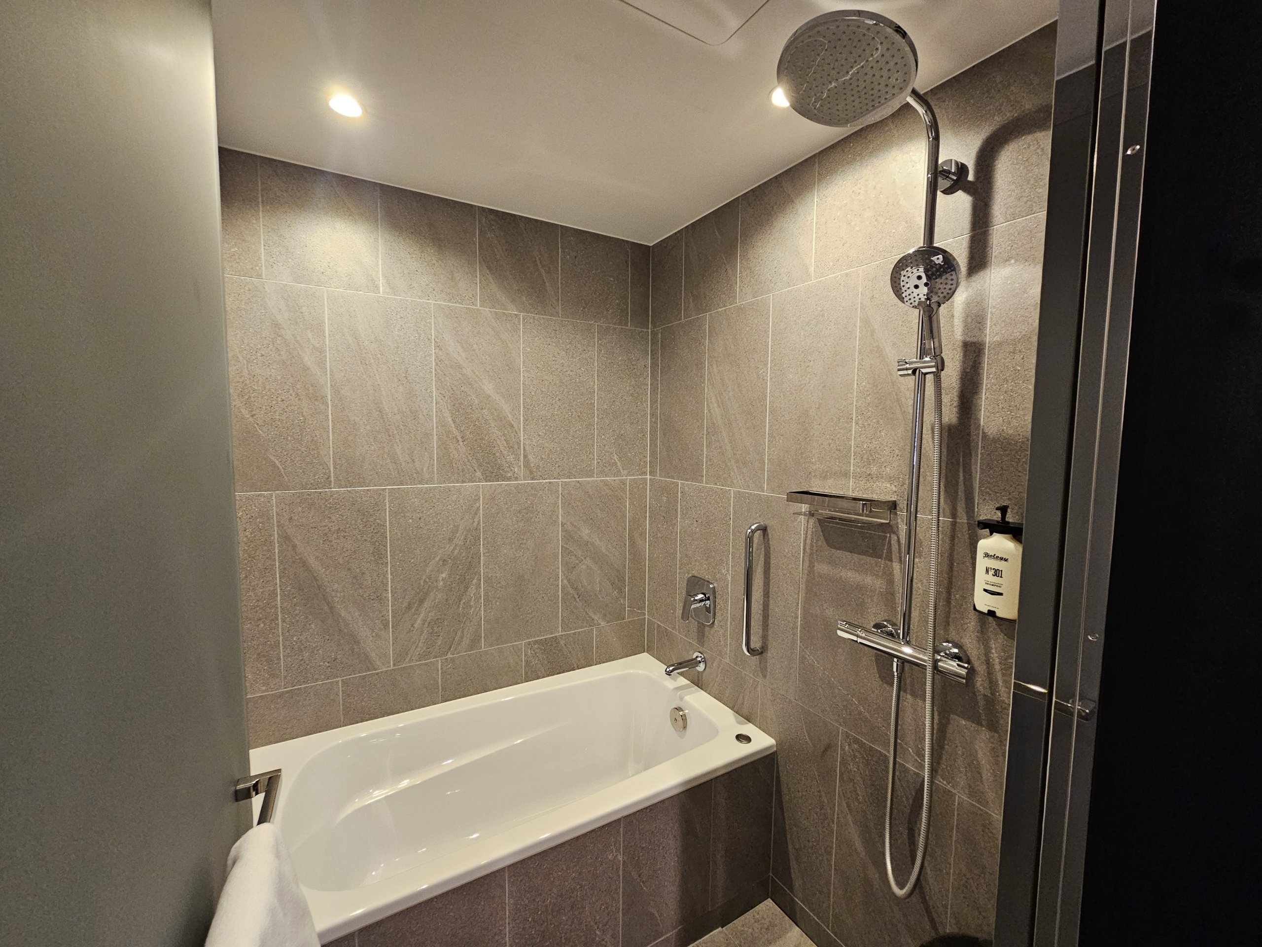 Il bagno è insolitamente spazioso per gli standard giapponesi.