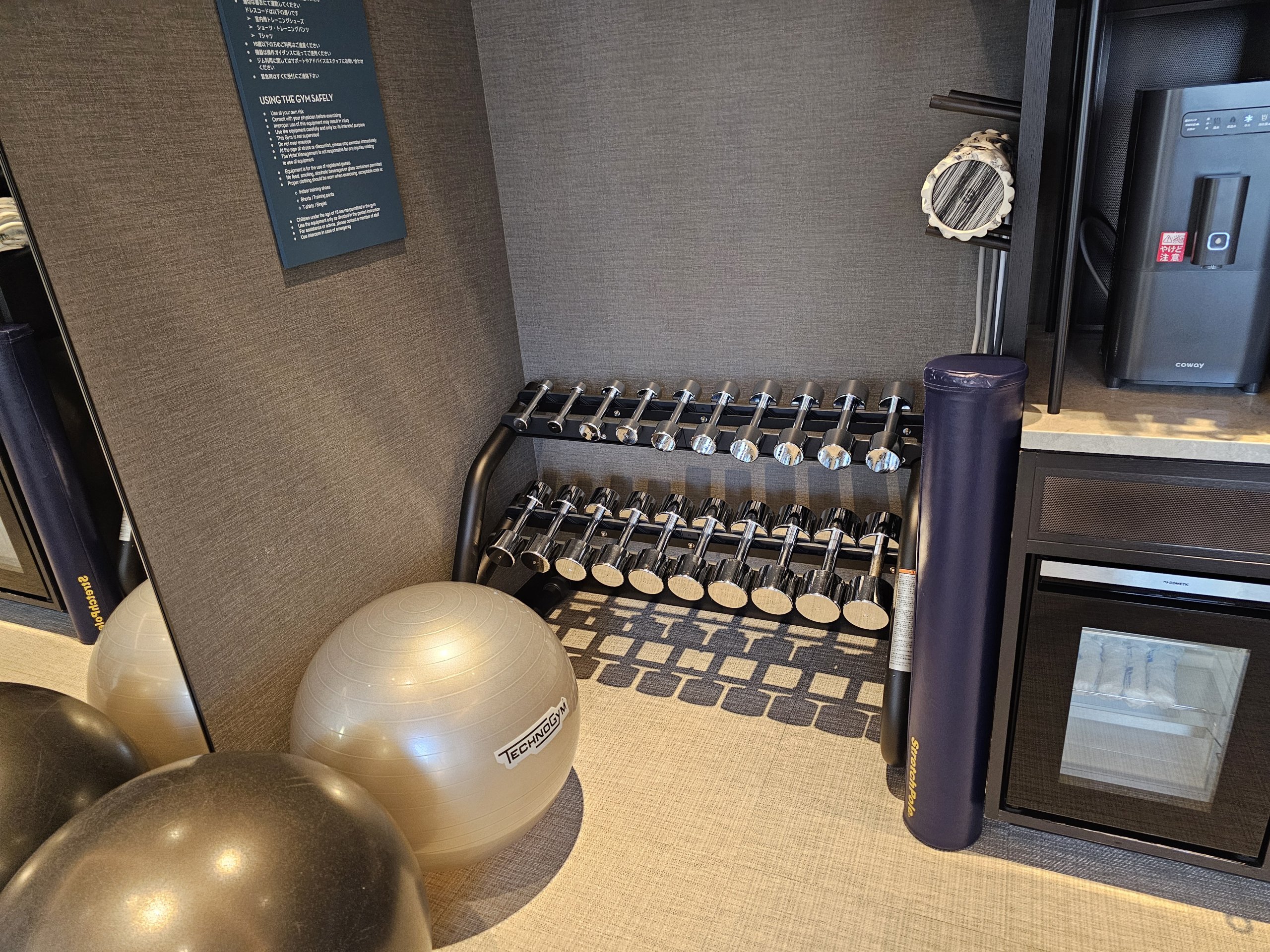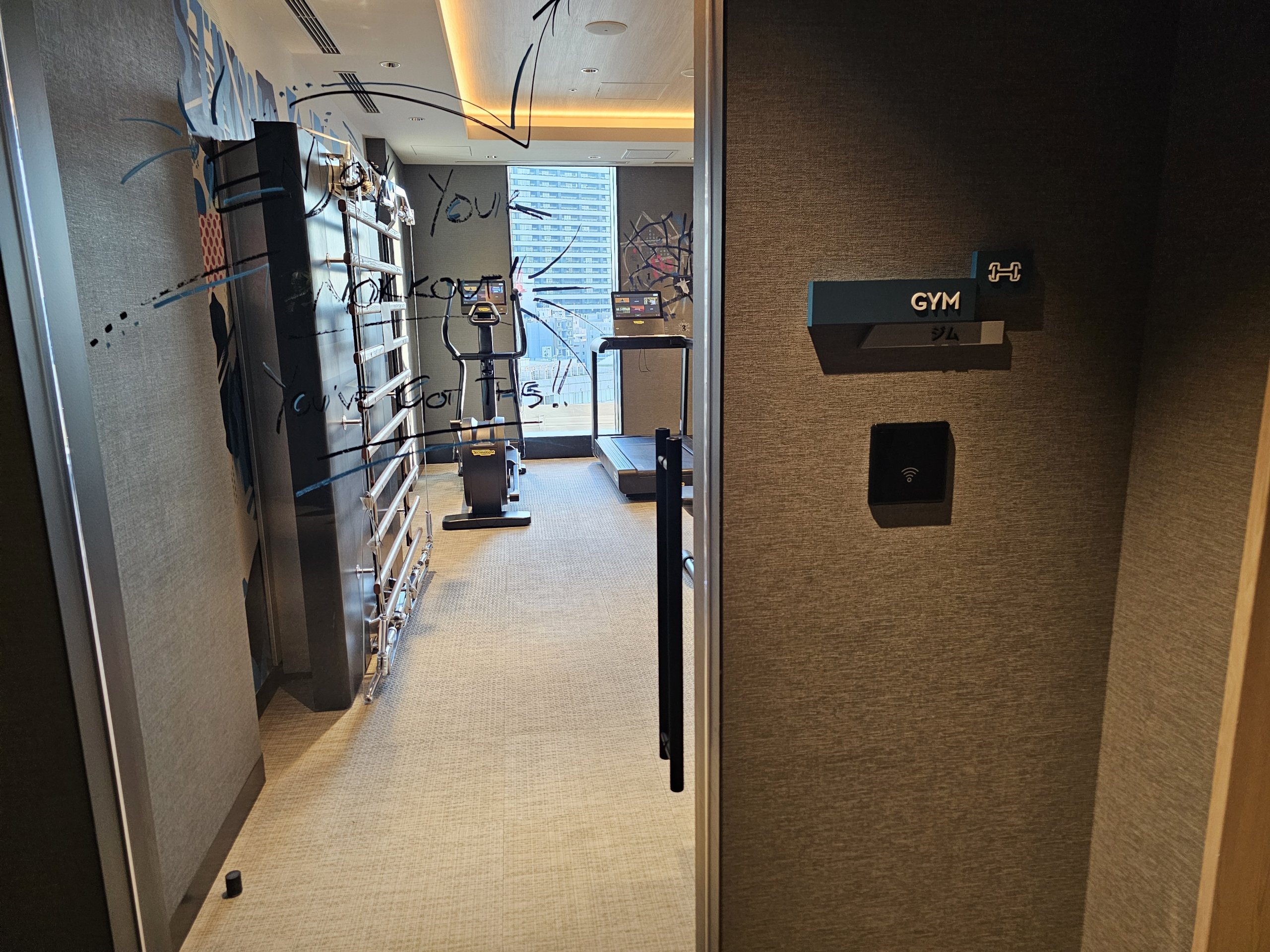 C'è un bel centro fitness moderno ma molto piccolo al piano dove si trova la reception. È già affollato con 3 persone presenti. È aperto 24 ore su 24, 7 giorni su 7.