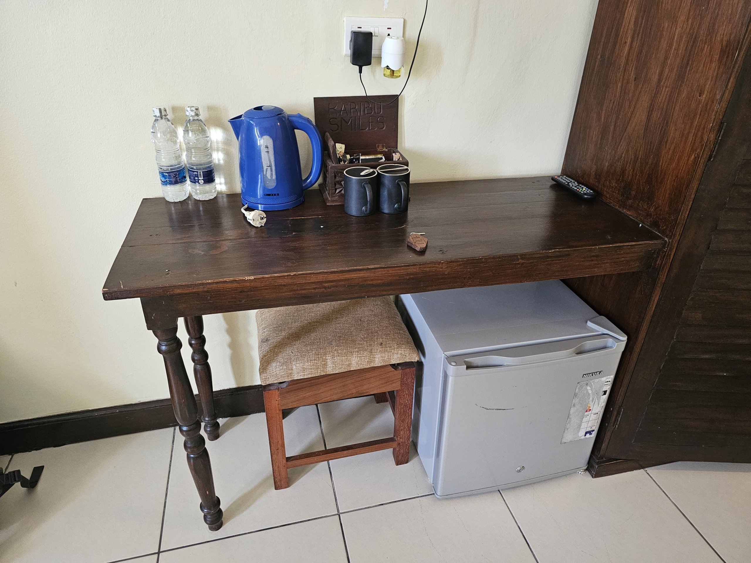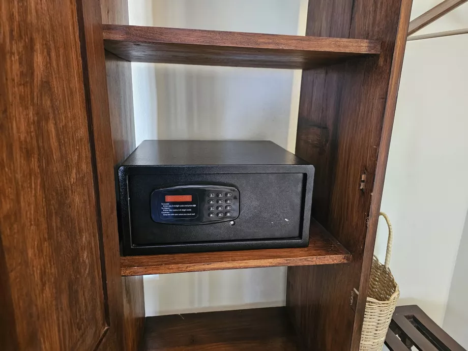 In camera troverete anche una cassaforte, un telo da mare, un bollitore, caffè e tè istantanei.