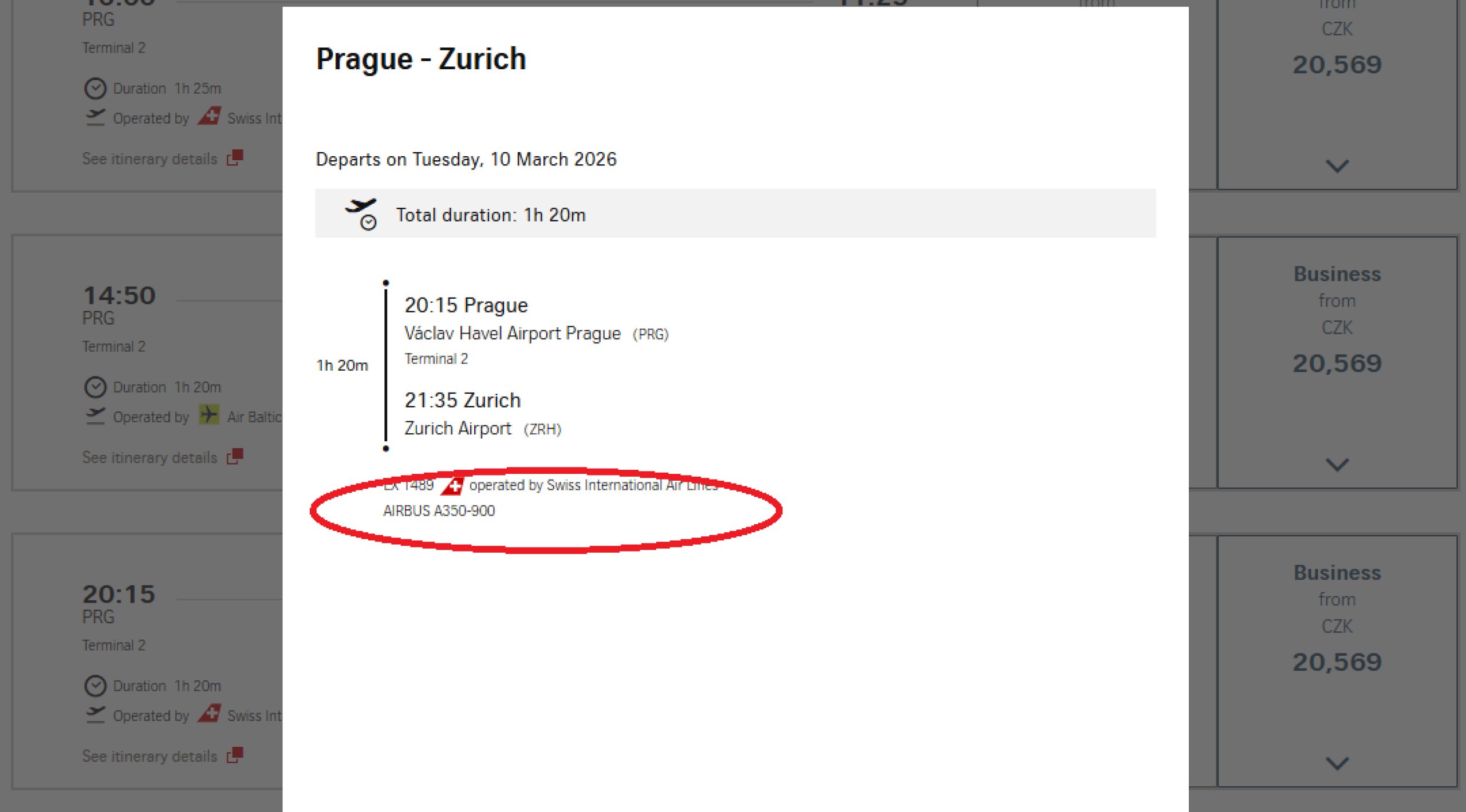 Un widebody su una rotta oraria tra Praga e Zurigo è una rarità. E se si vola con un A350, è meglio scegliere un posto che non si incontra sui normali voli europei.