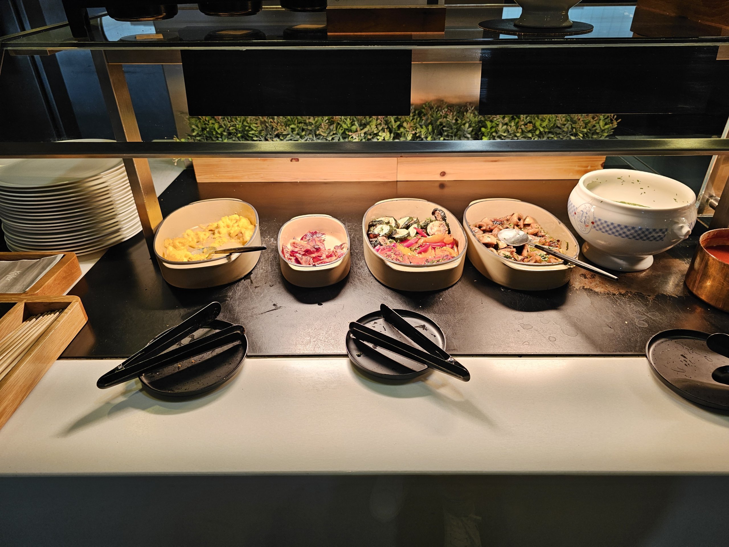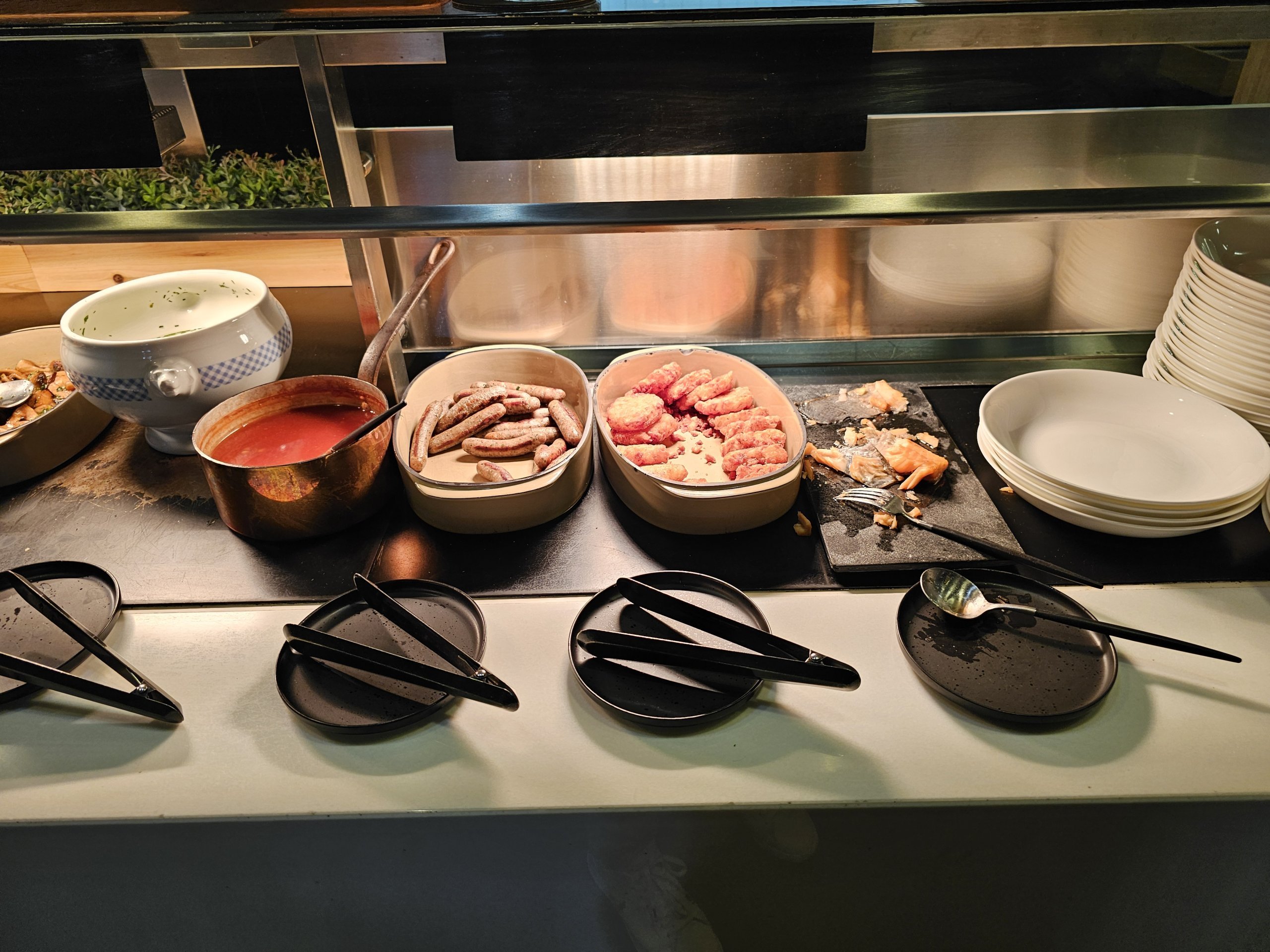 Più a destra, tra il bar e i servizi igienici, è possibile accomodarsi nel ristorante à la carte. Non è necessario scegliere dal menu, ma ci si può sedere ai tavoli e scegliere dal menu a buffet, piuttosto ampio; per i dettagli si veda sotto.