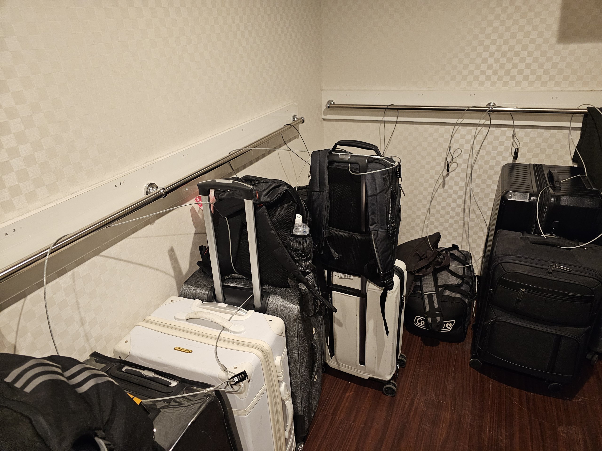 Posiziono io stesso i bagagli nel deposito e li chiudo con un lucchetto dotato di codice, che devo fotografare per poterlo sbloccare in seguito.