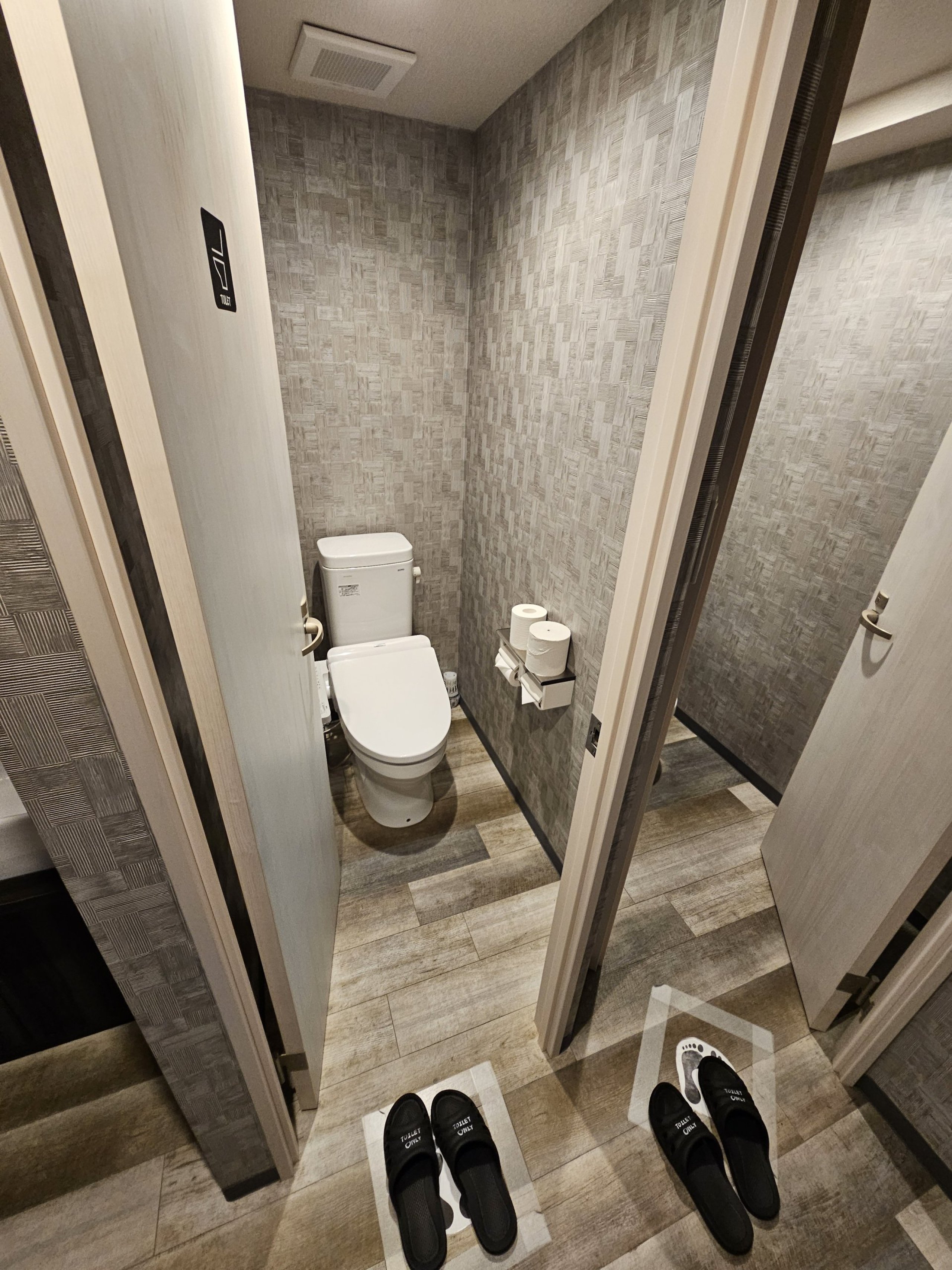 Subito fuori dalla porta, devo togliermi le scarpe e metterle in un armadietto che non si chiude a chiave. Ma il Giappone è un paese sicuro, con una criminalità quasi nulla, quindi non temo che mi rubino le scarpe o altri effetti personali.